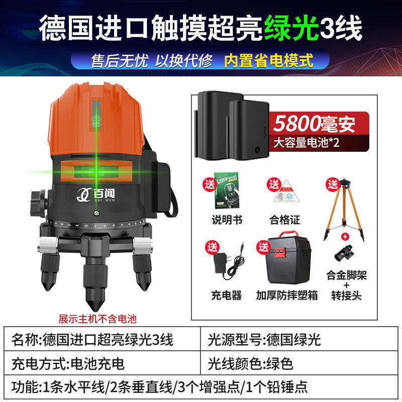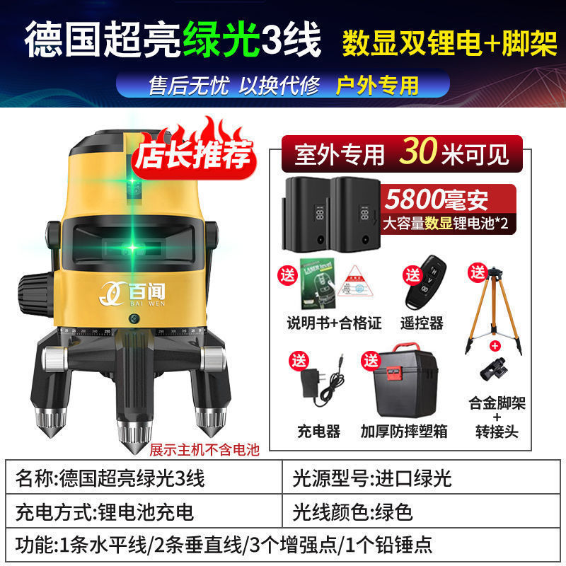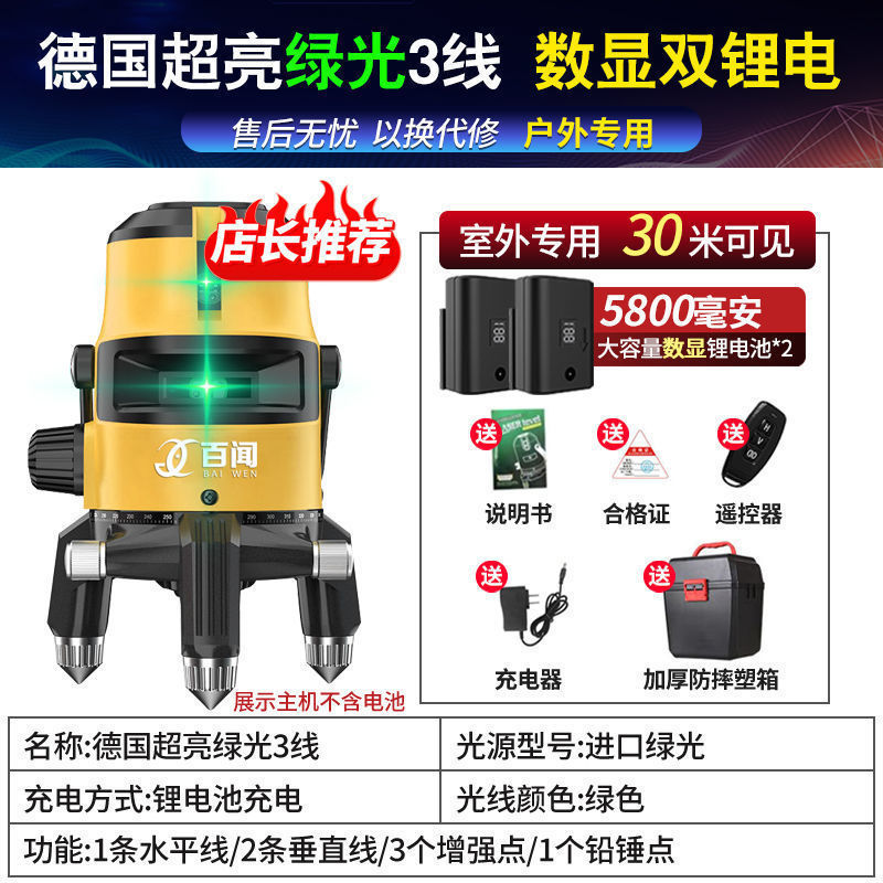 레이저 레벨 적외선 녹색광 강한 빛 고정밀 2라인 3라인 5라인 레이저 청색광 자동 레벨링 수위 측정기스토어 가기