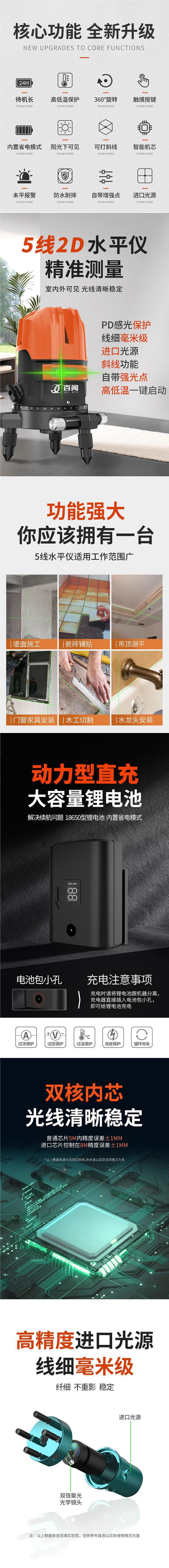 레이저 레벨 적외선 녹색광 강한 빛 고정밀 2라인 3라인 5라인 레이저 청색광 자동 레벨링 수위 측정기