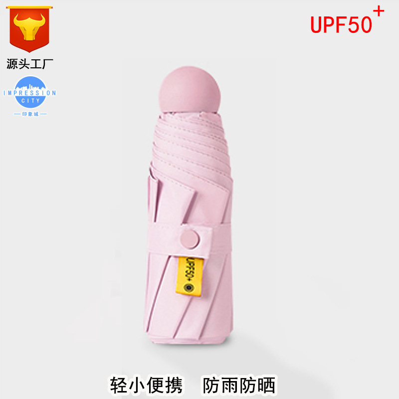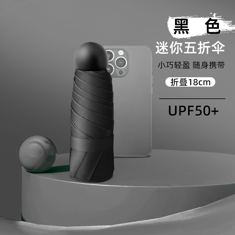 작은 휴대용 50% 접힌 태양 우산 캡슐 태양 보호 자외선 보호 햇빛 우산 이중 목적 접는 햇빛 우산