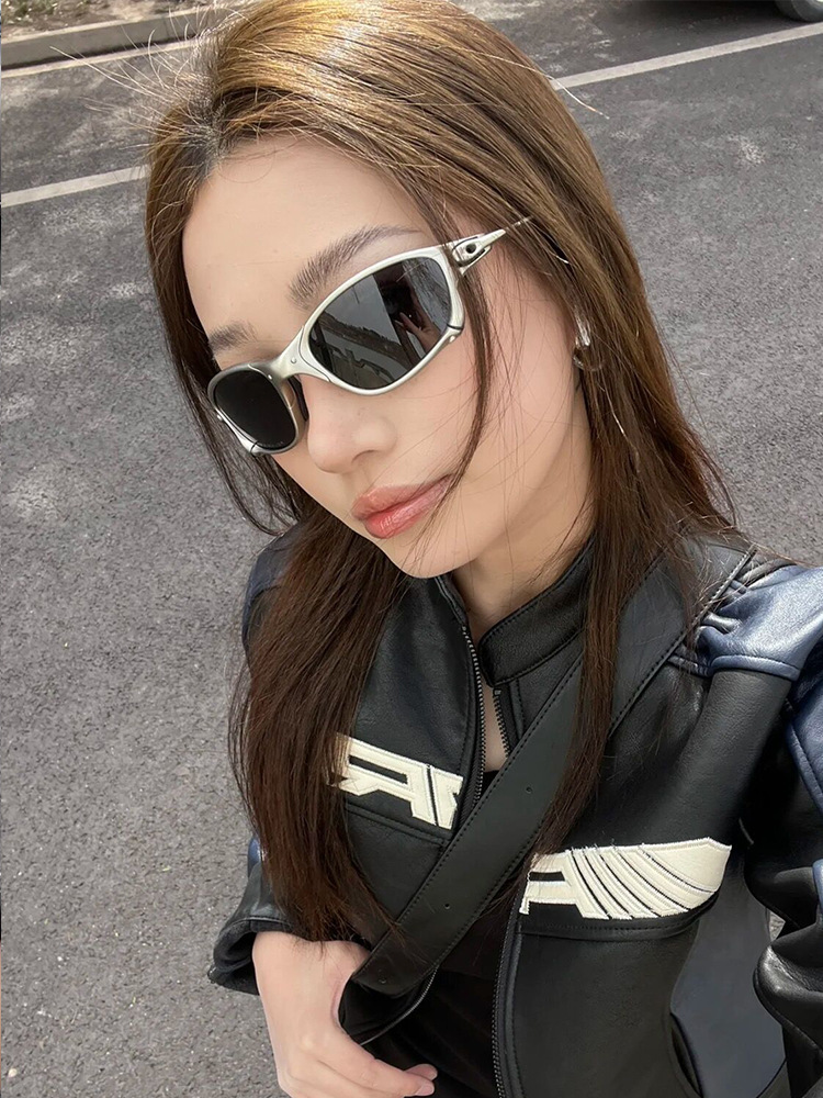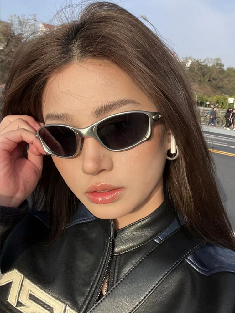 Y2K 밀레 니얼 사이버 펑크 미래형 기능성 선글라스 남성과 여성의 트렌디 인 스파이스 걸스 컨캐브 스타일 승마 선글라스