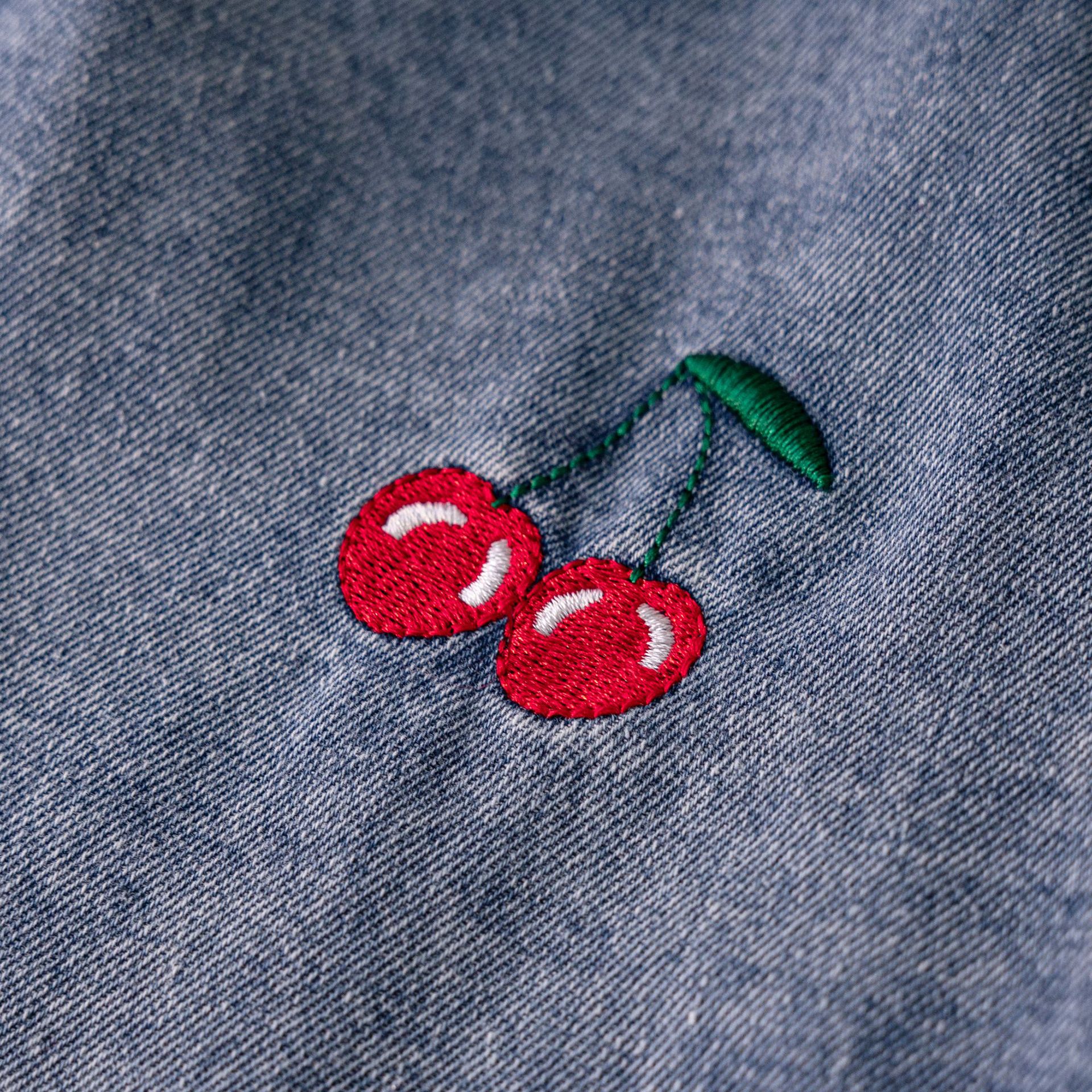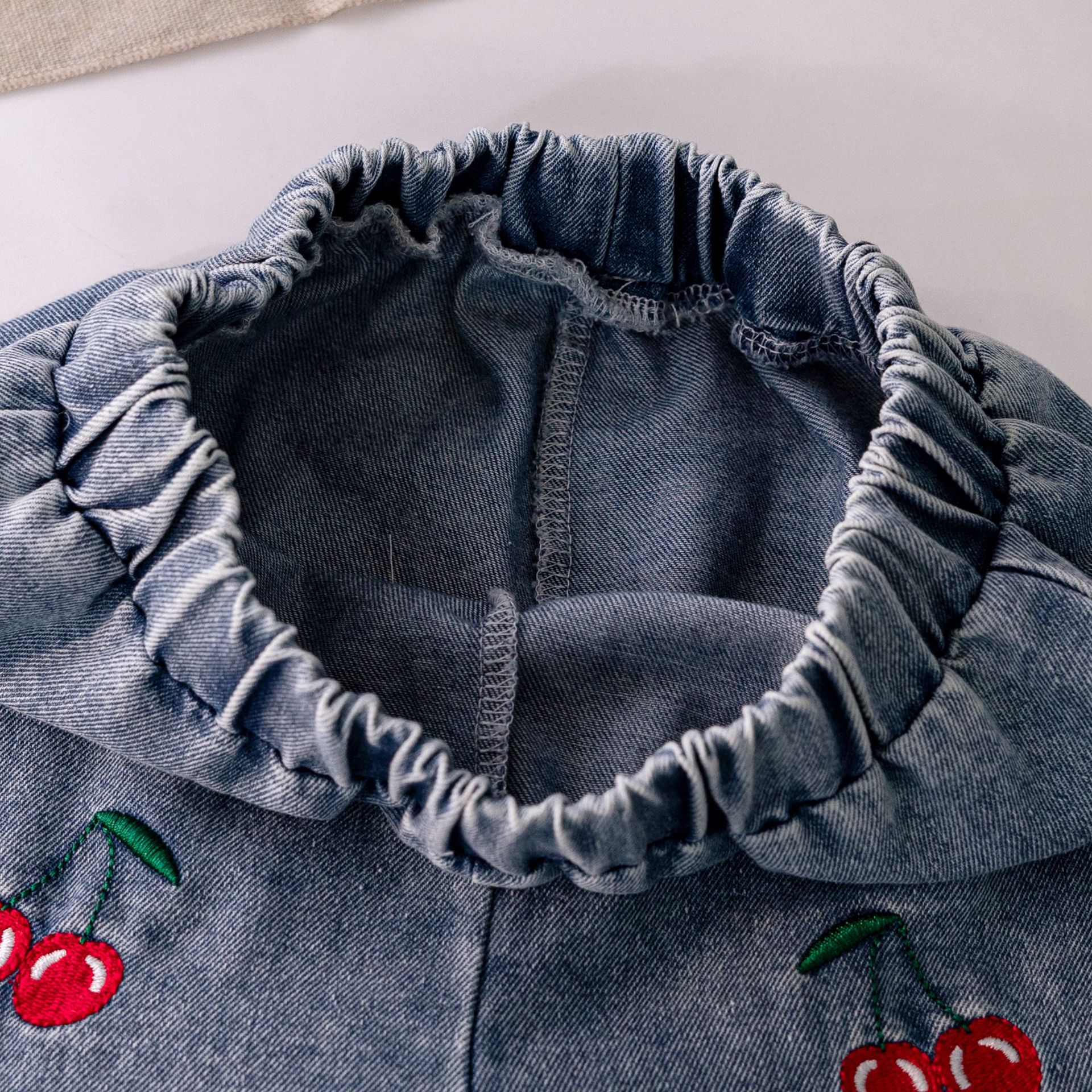 한국 스타일 여아 여름 옷, 인기 패셔너블 캐주얼 조끼 니트 탑 + 체리 자수 데님 바지 정장스토어 가기