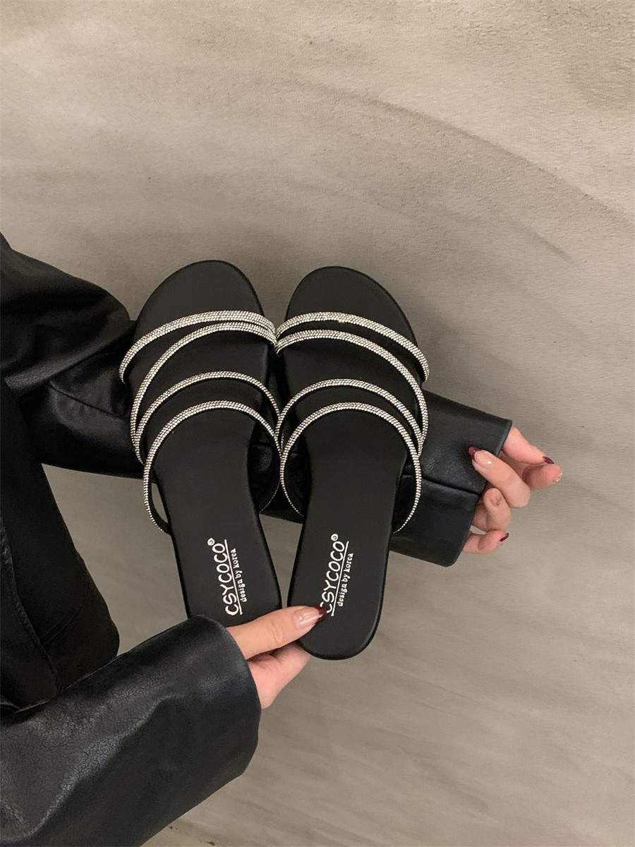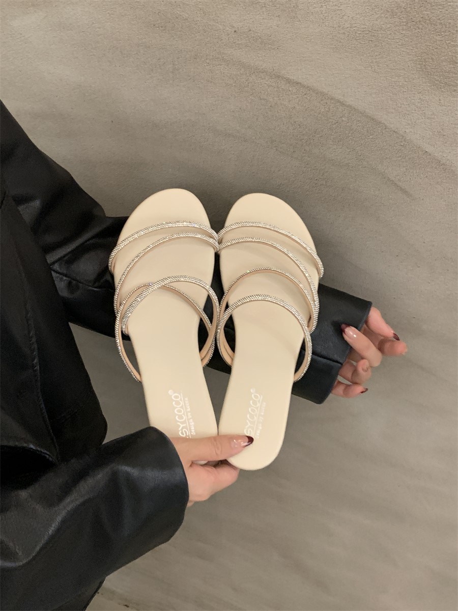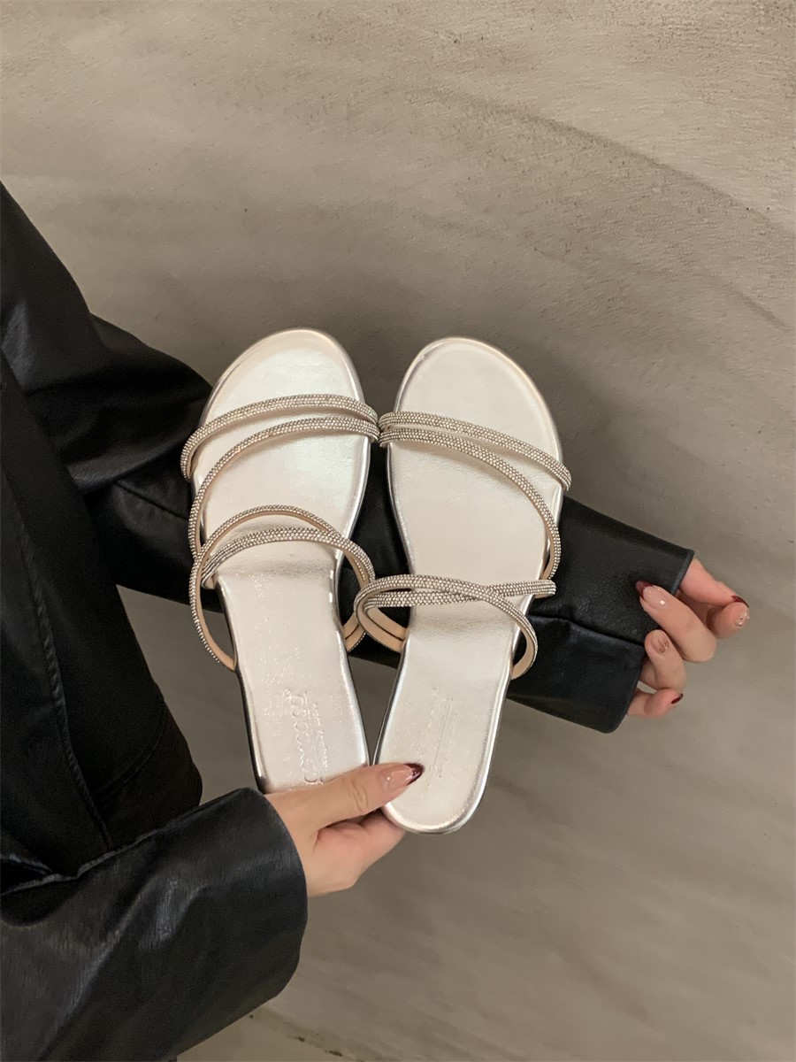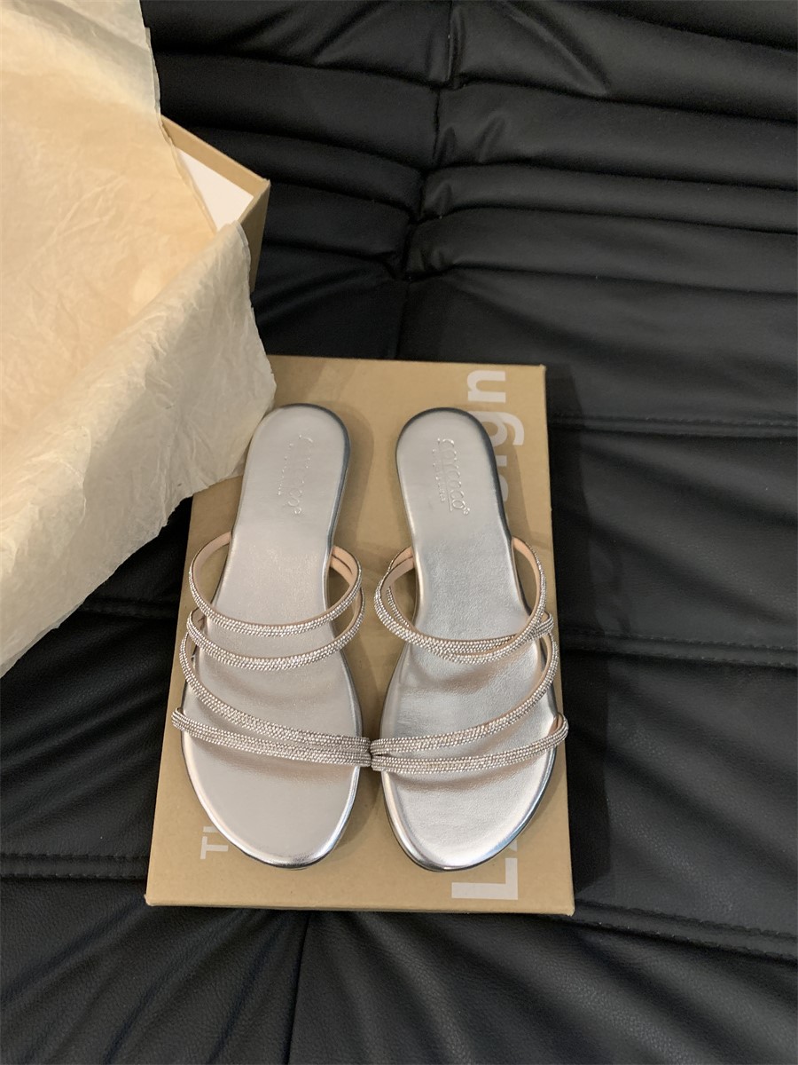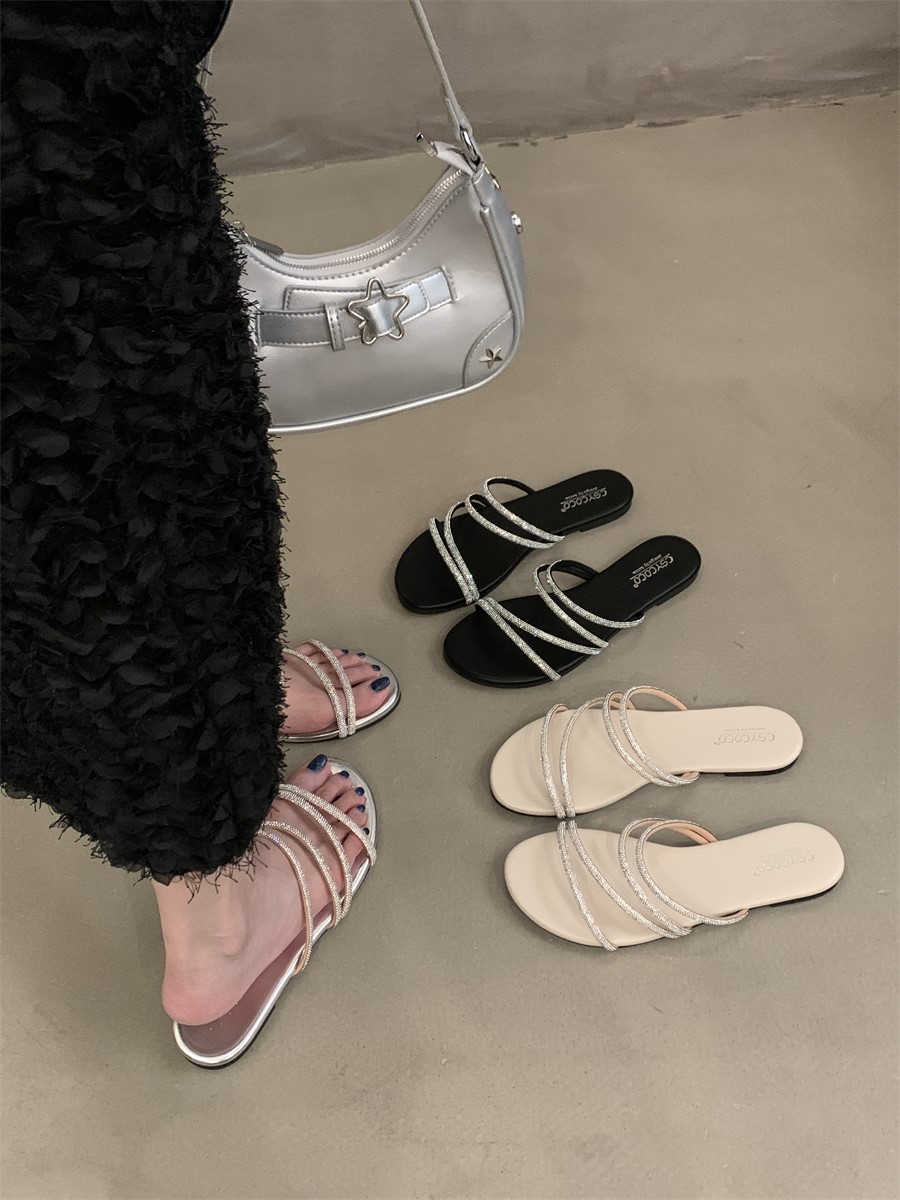 여름 신상품 2025 스커트와 매치하는 요정신발, 라인스톤 샌들