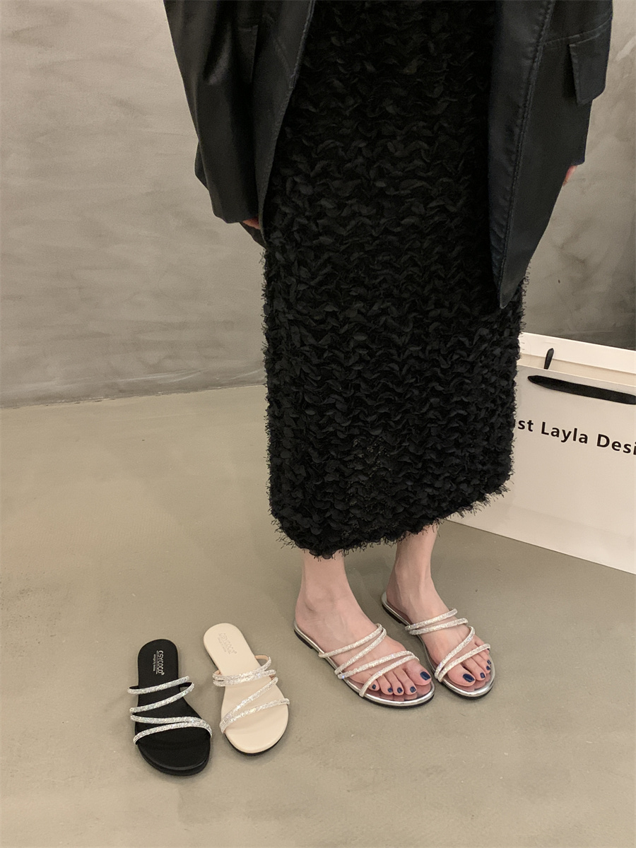 여름 신상품 2025 스커트와 매치하는 요정신발, 라인스톤 샌들스토어 가기