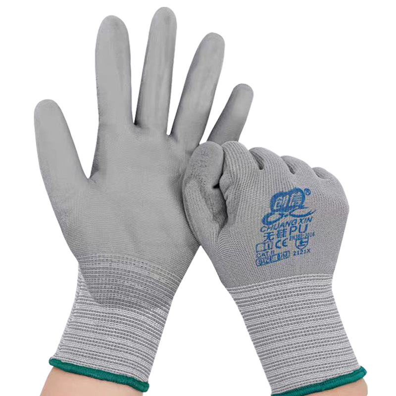 Chuangxin PU 코팅 손바닥 장갑 실리콘 프리 고무 코팅 얇은 나일론 정전기 방지 미끄럼 방지 작업 내마모성 노동 보호 장갑스토어 가기