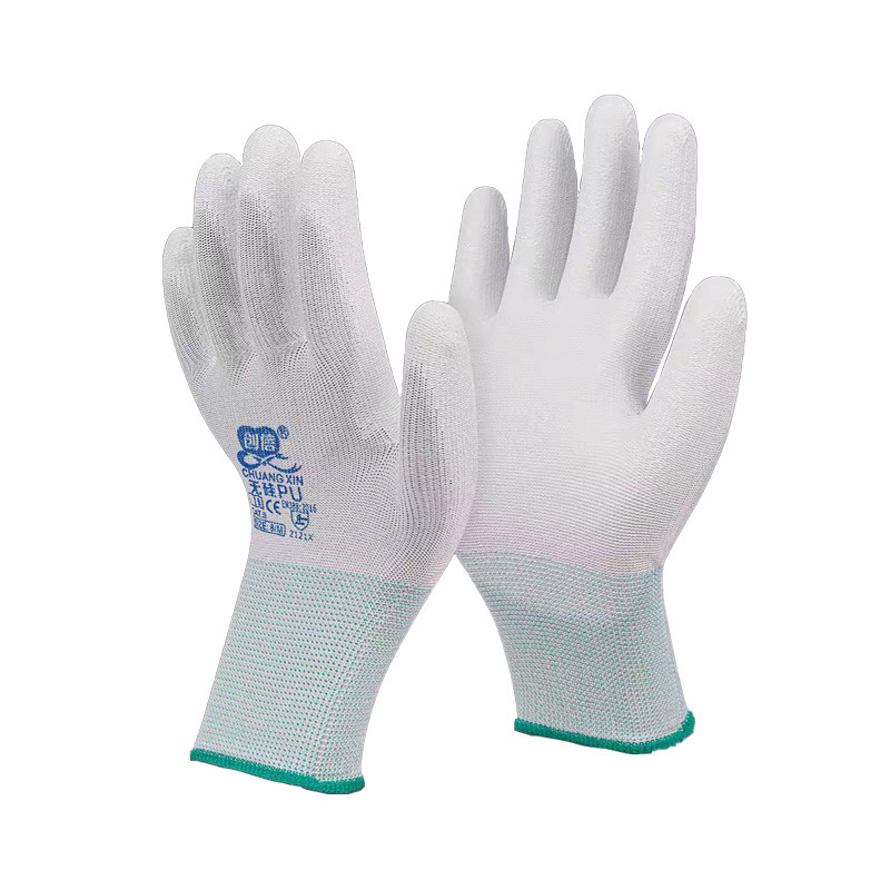 Chuangxin PU 코팅 손바닥 장갑 실리콘 프리 고무 코팅 얇은 나일론 정전기 방지 미끄럼 방지 작업 내마모성 노동 보호 장갑