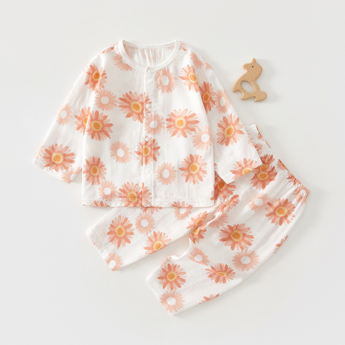 유아 더블 레이어 거즈 긴팔 바지 여름 아기 잠옷 홈 옷 분할 아기 옷 클래스 대나무 섬유스토어 가기