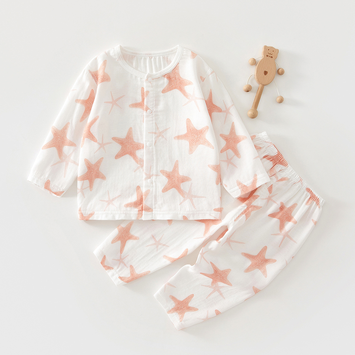 유아 더블 레이어 거즈 긴팔 바지 여름 아기 잠옷 홈 옷 분할 아기 옷 클래스 대나무 섬유