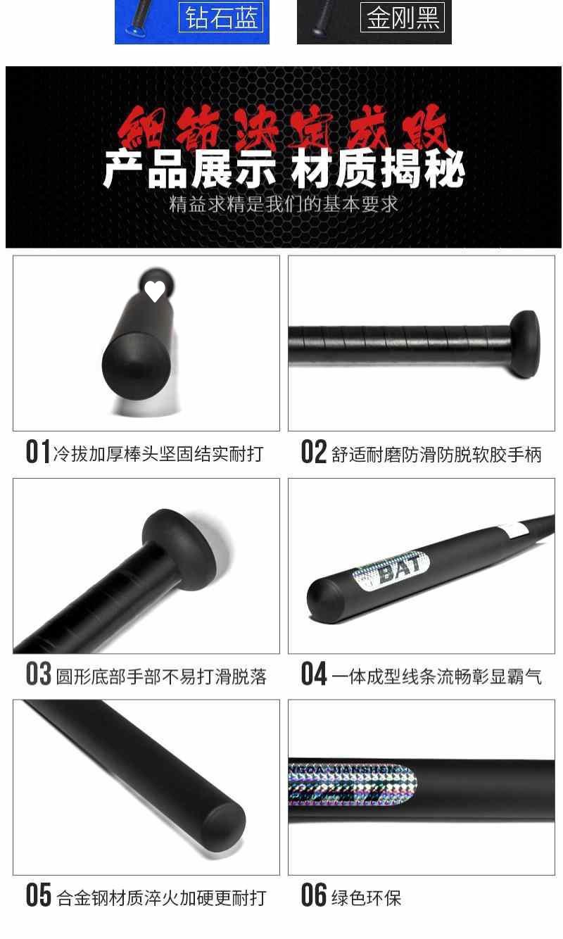 두껍고 단련 된 야구 방망이 젖빛 합금 강철 검은 야구 스틱 철제 막대기 자동차 자기 방어 법적 무기 야구 방망이 하나스토어 가기