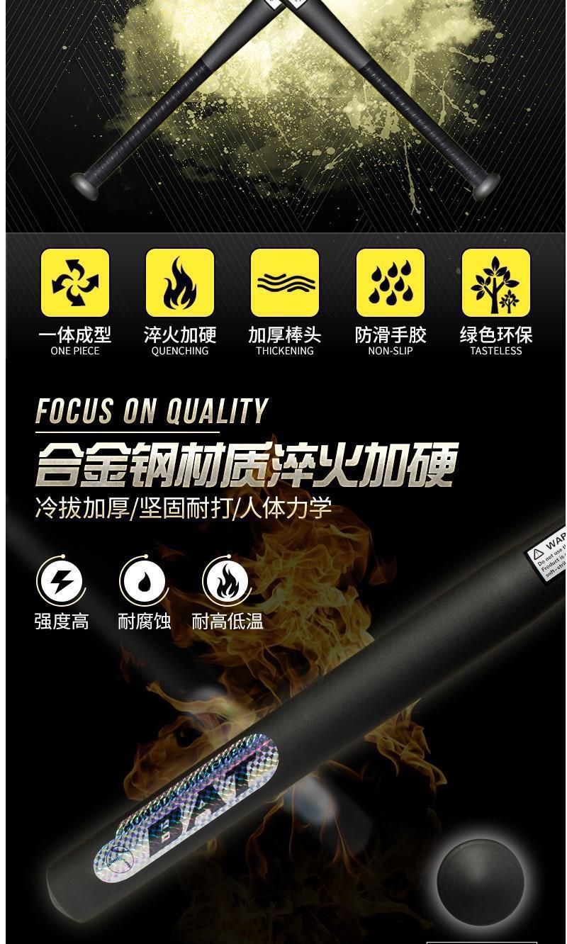 두껍고 단련 된 야구 방망이 젖빛 합금 강철 검은 야구 스틱 철제 막대기 자동차 자기 방어 법적 무기 야구 방망이 하나