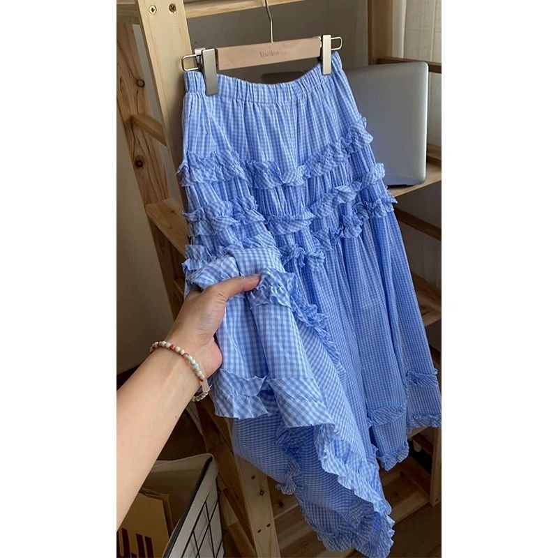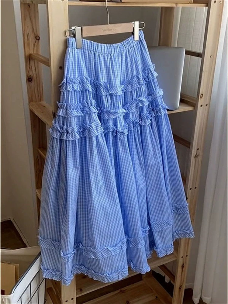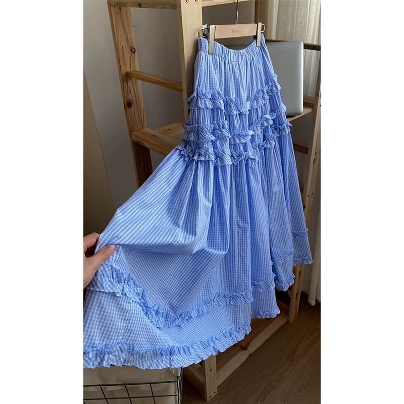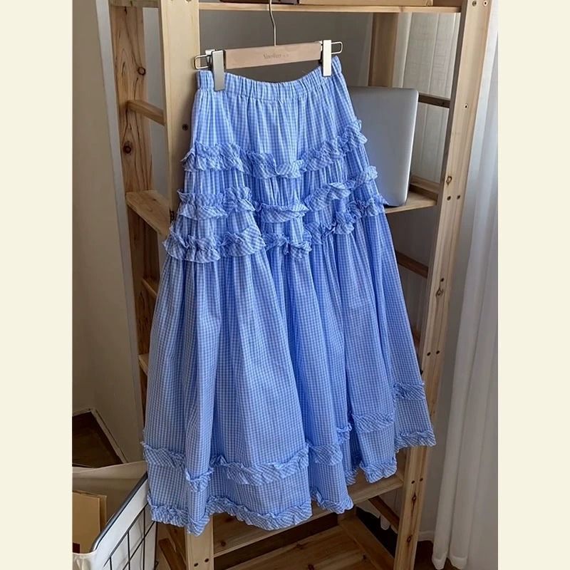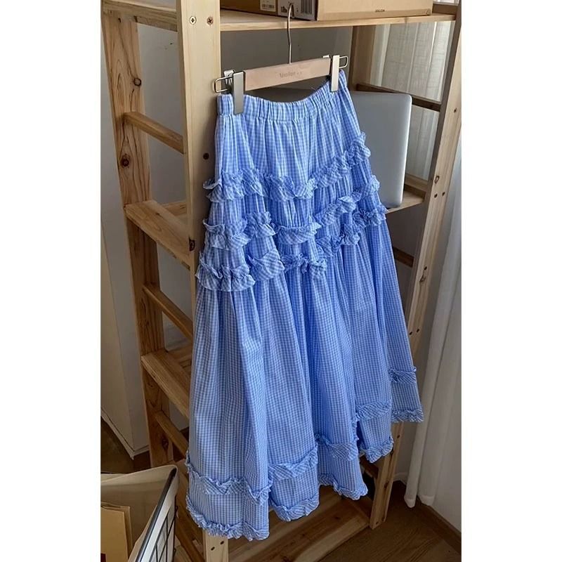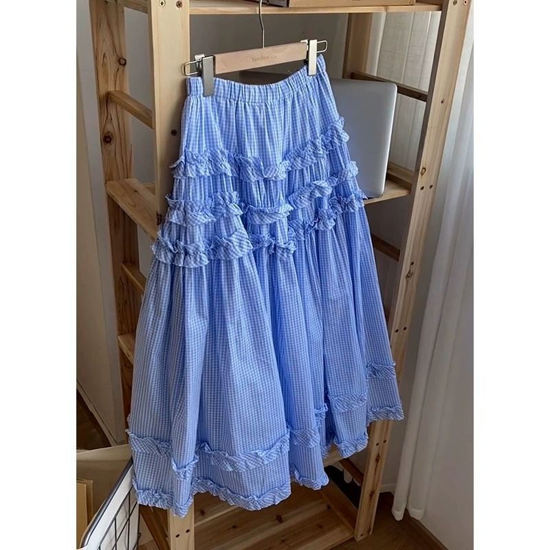 헤비 레이스 스티칭 화이트 스커트 여성의 여름 캐주얼 높은 허리 느슨한 대형 스윙 스커트 A 라인 스커트스토어 가기