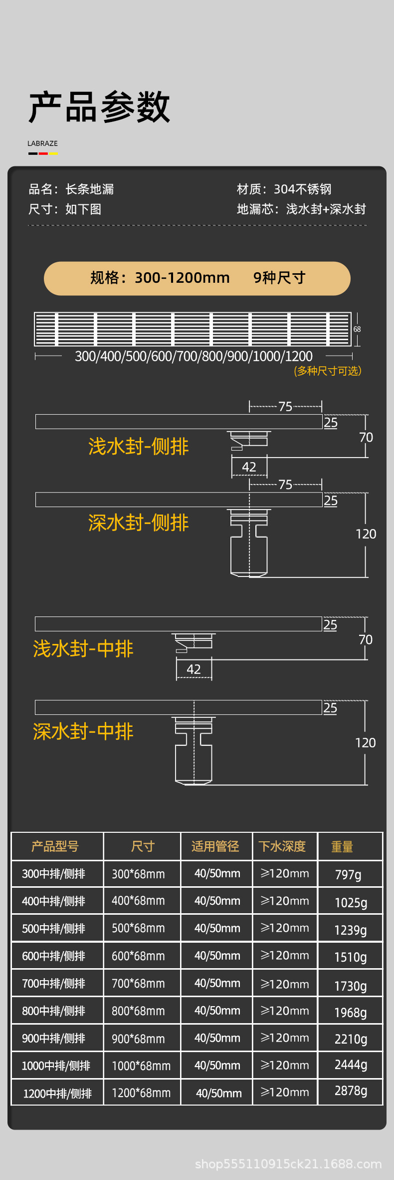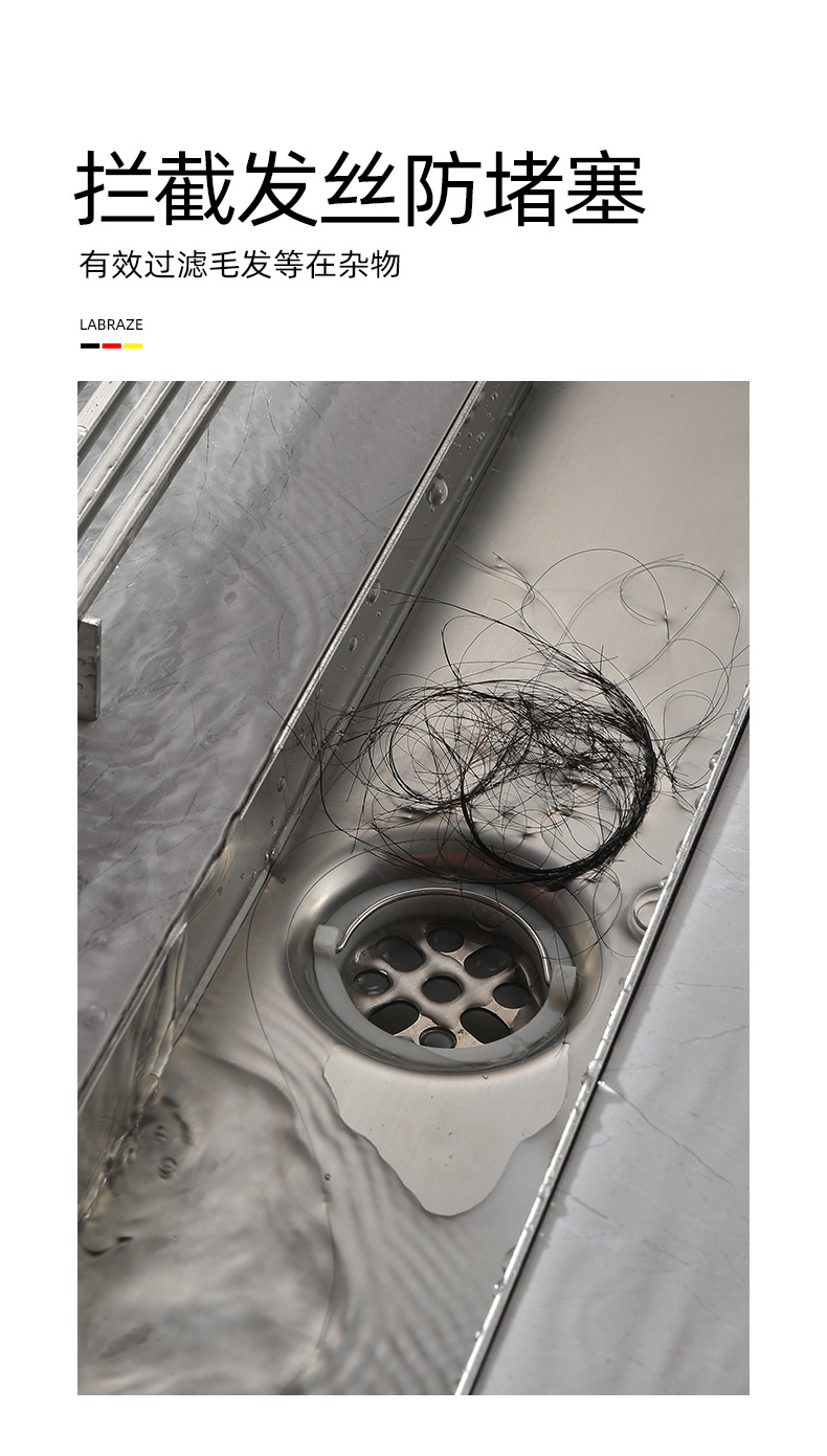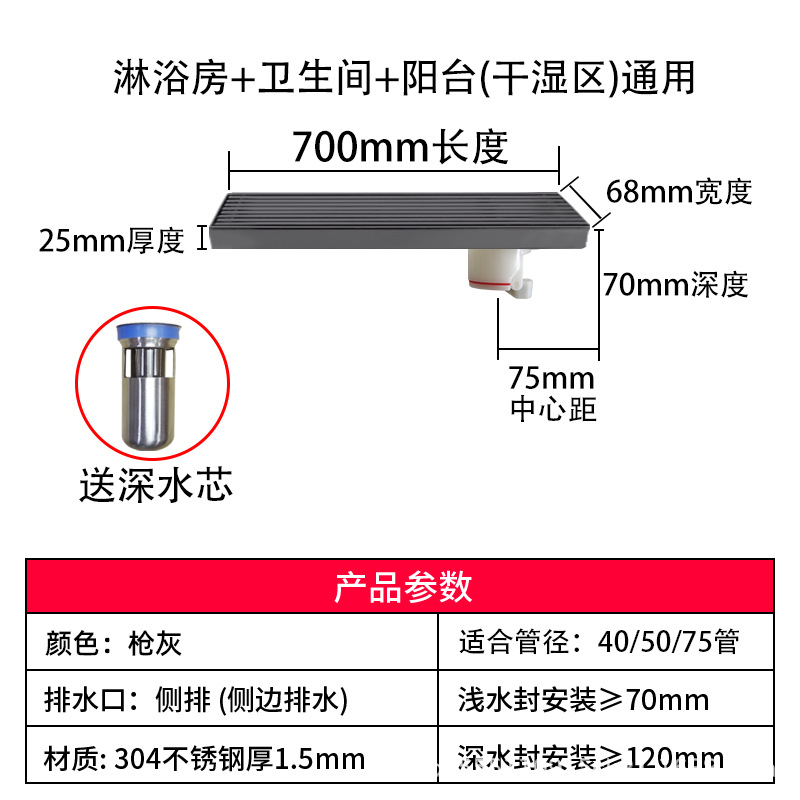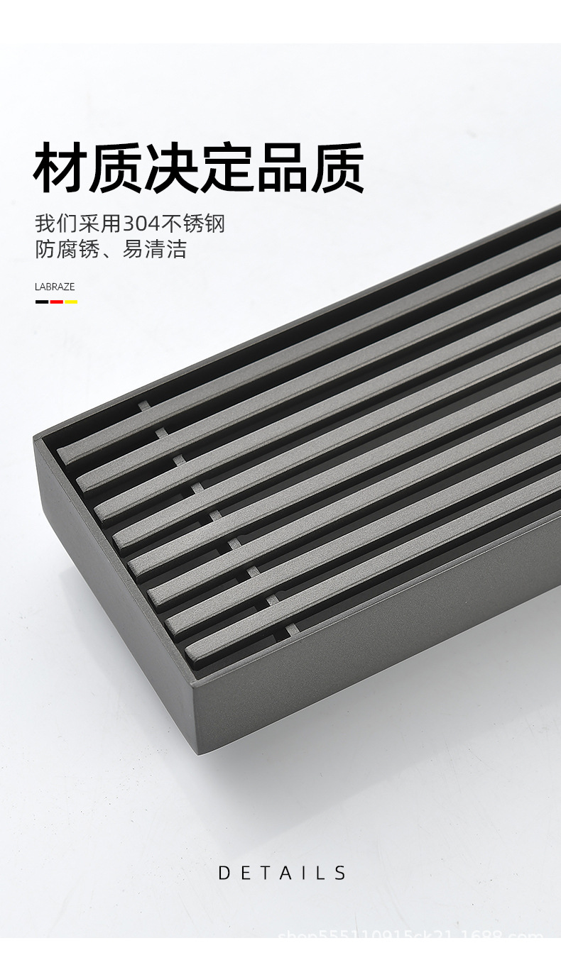 스테인레스 스틸 긴 바 바닥 배수구 304 바 욕실 배수구 직사각형 대용량 건 그레이 냄새 방지 욕실 68