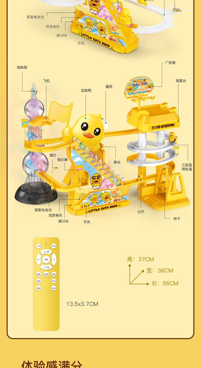 • 중형 귀여운 오리 트랙 슬라이드 [USB 원격 제어 버전] (오리 3개 + 조기 교육 콘텐츠 2000개 포함: 중국어 및 영어 모드)