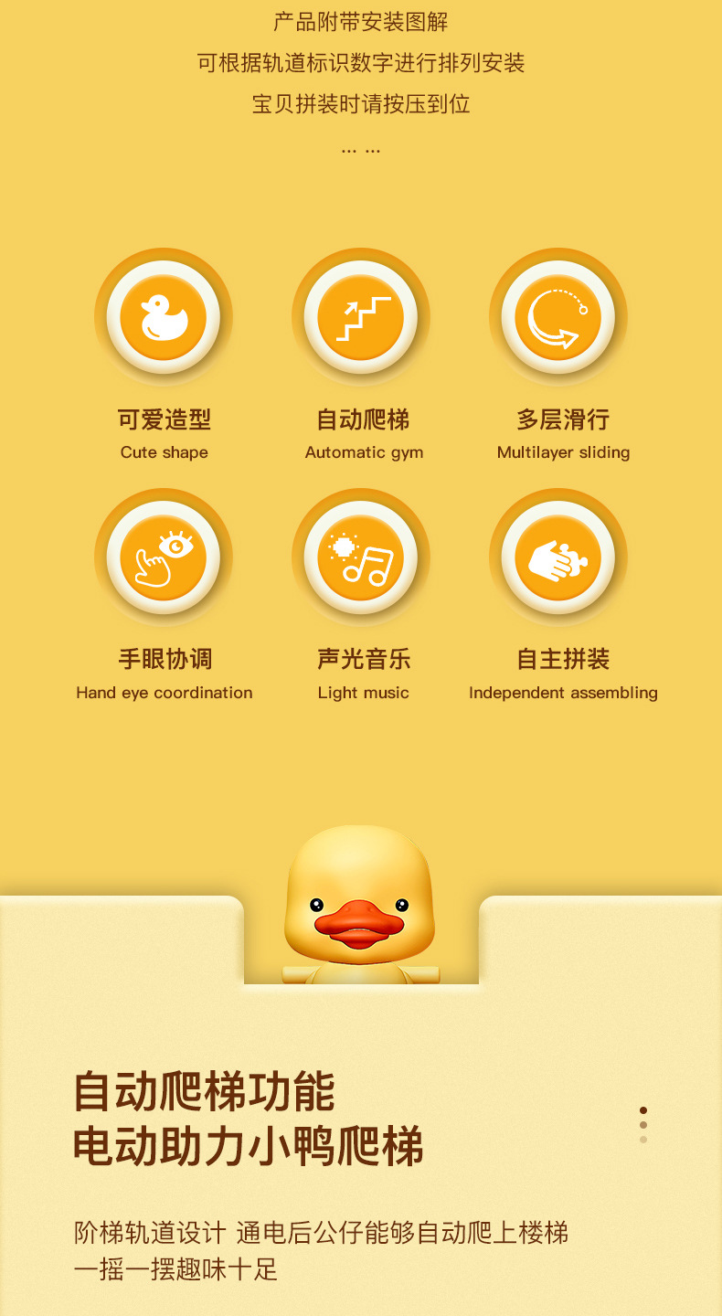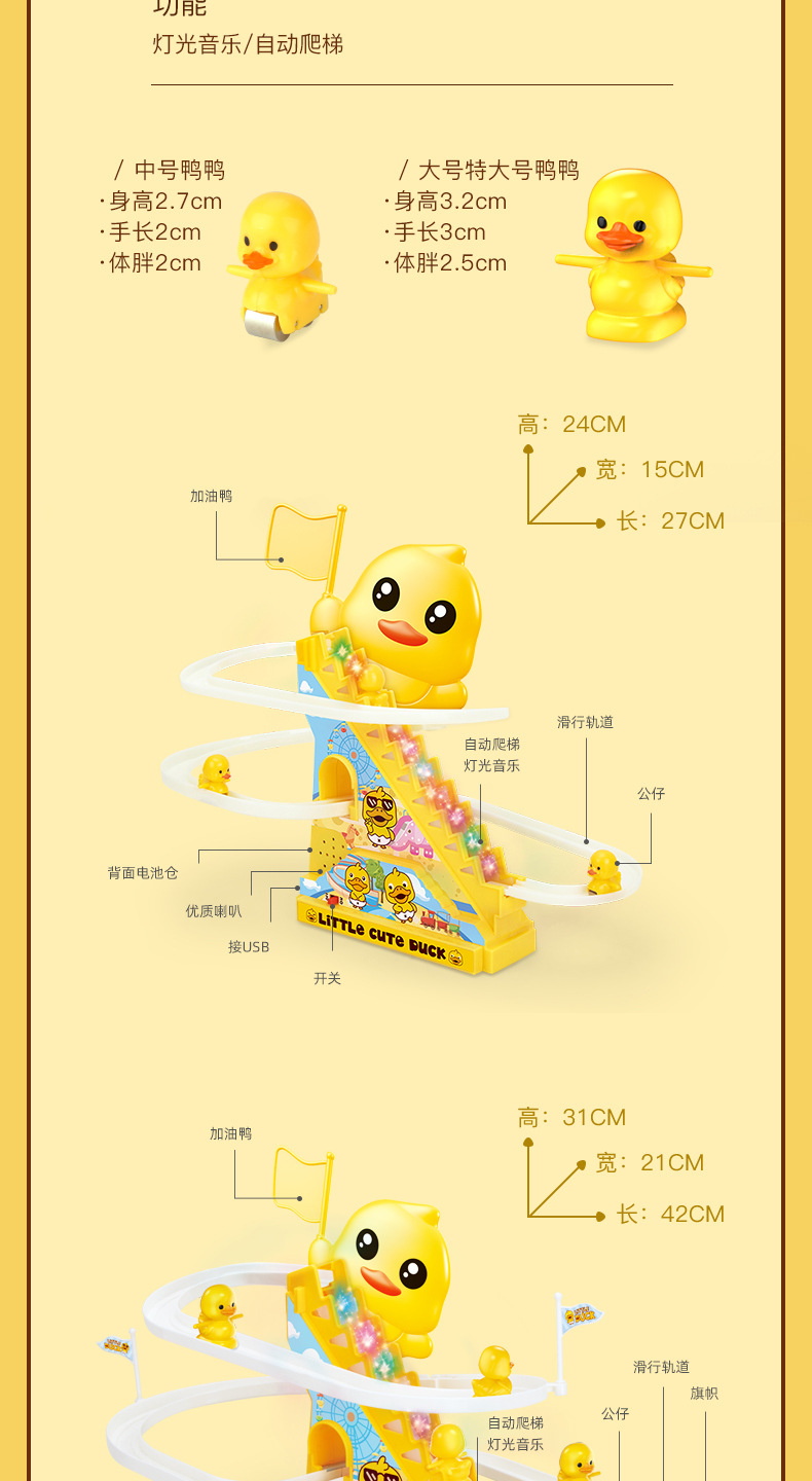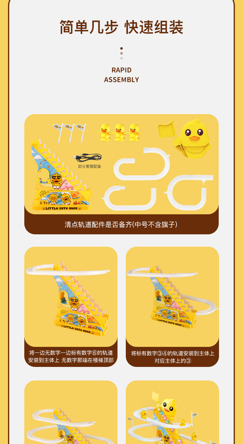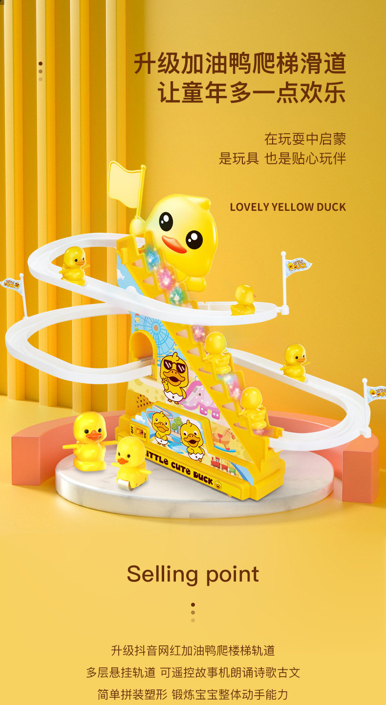 어린이 자동 오리 계단 오르기 트랙 전동 교육용 장난감 도매 음악과 조명 포함 조기 교육용스토어 가기