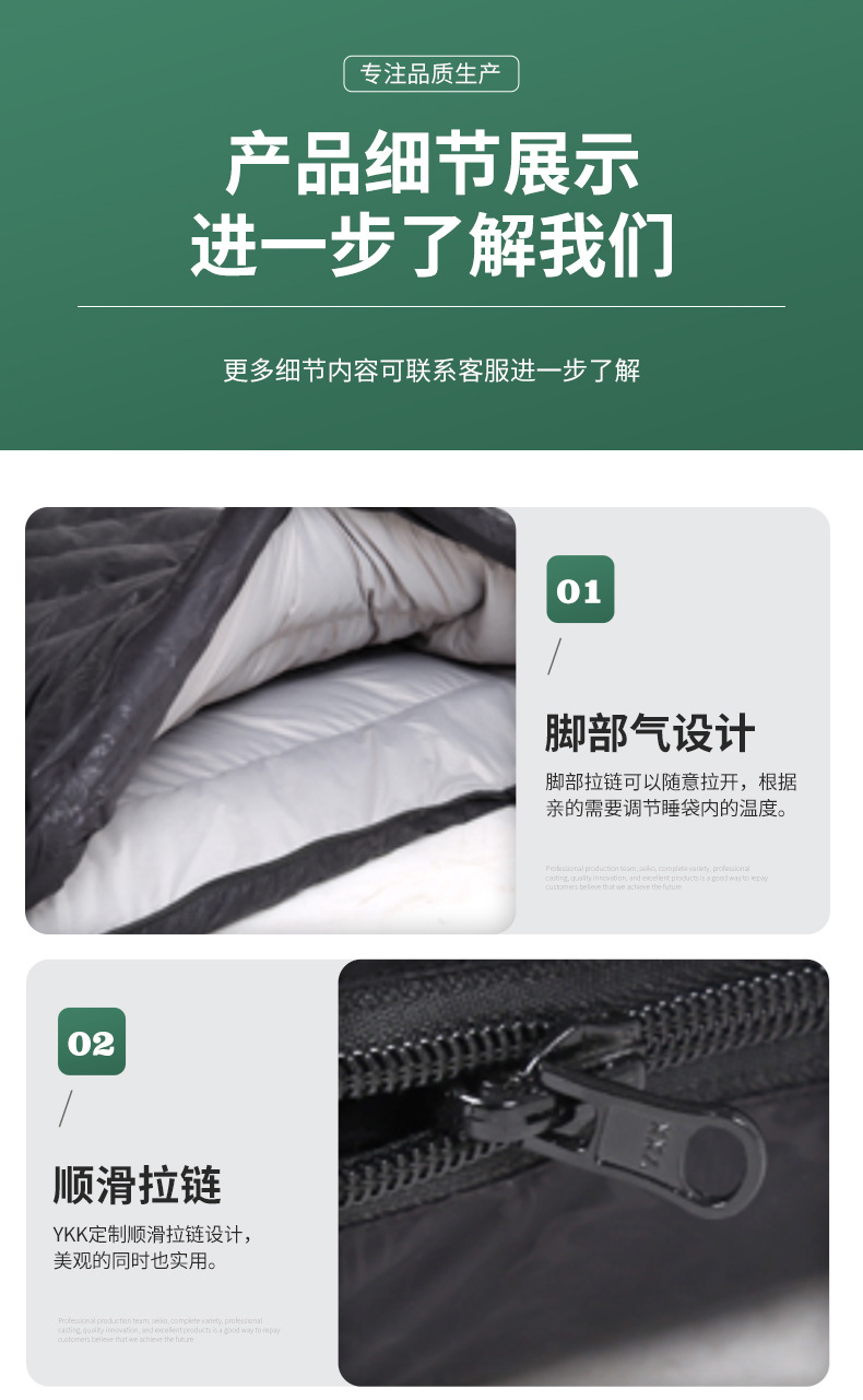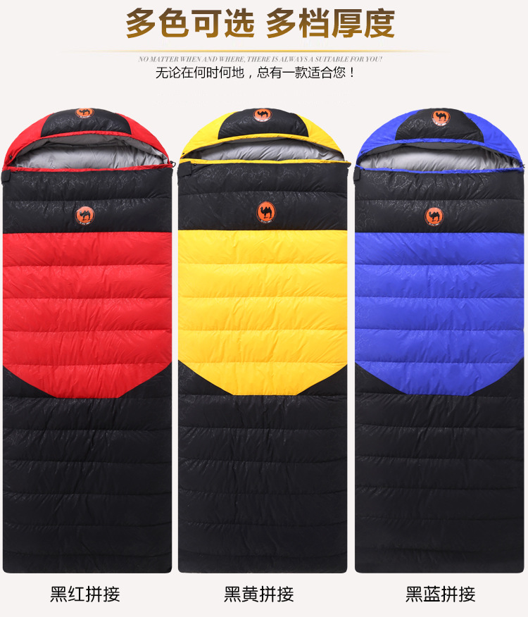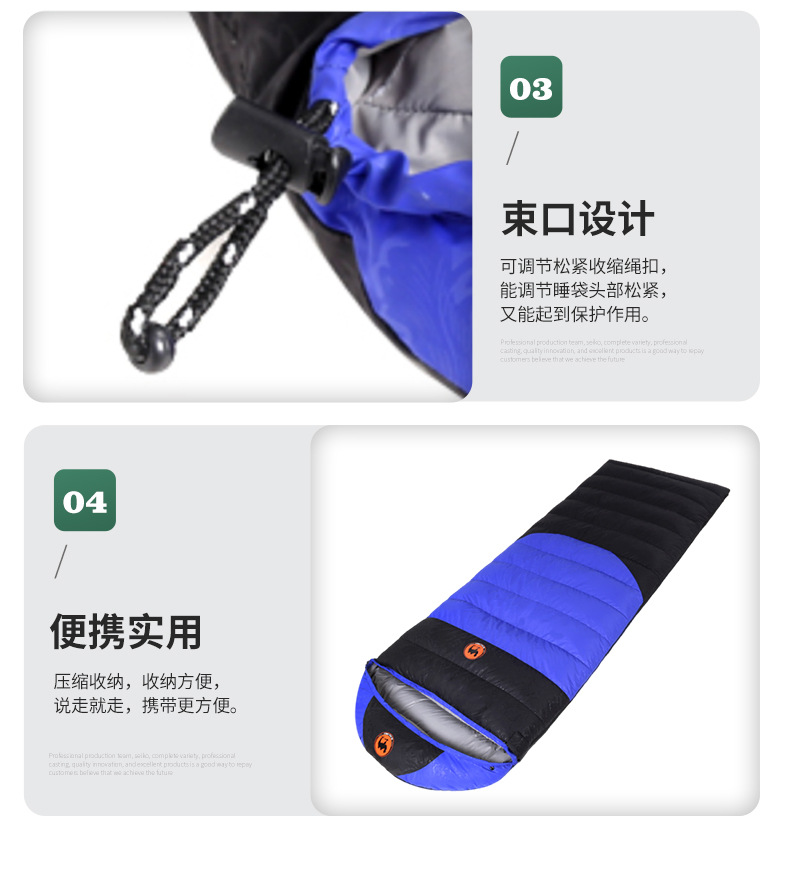 봄과 겨울 야외 캠핑을 위한 휴대용 봉투 침낭 두꺼운 방한 접합 가능한 오리 및 거위 다운 침낭 이중 목적스토어 가기