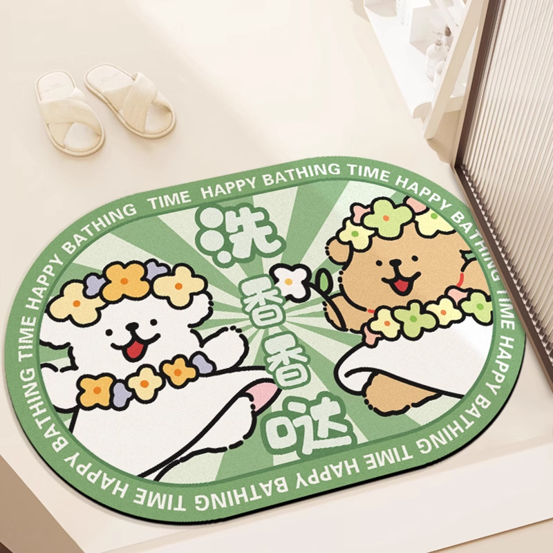 만화 규조토 진흙 욕실 바닥 매트, 샤워실 흡수 매트, 욕실 문, 욕실 화장실 속건성 미끄럼 방지 발 매트스토어 가기