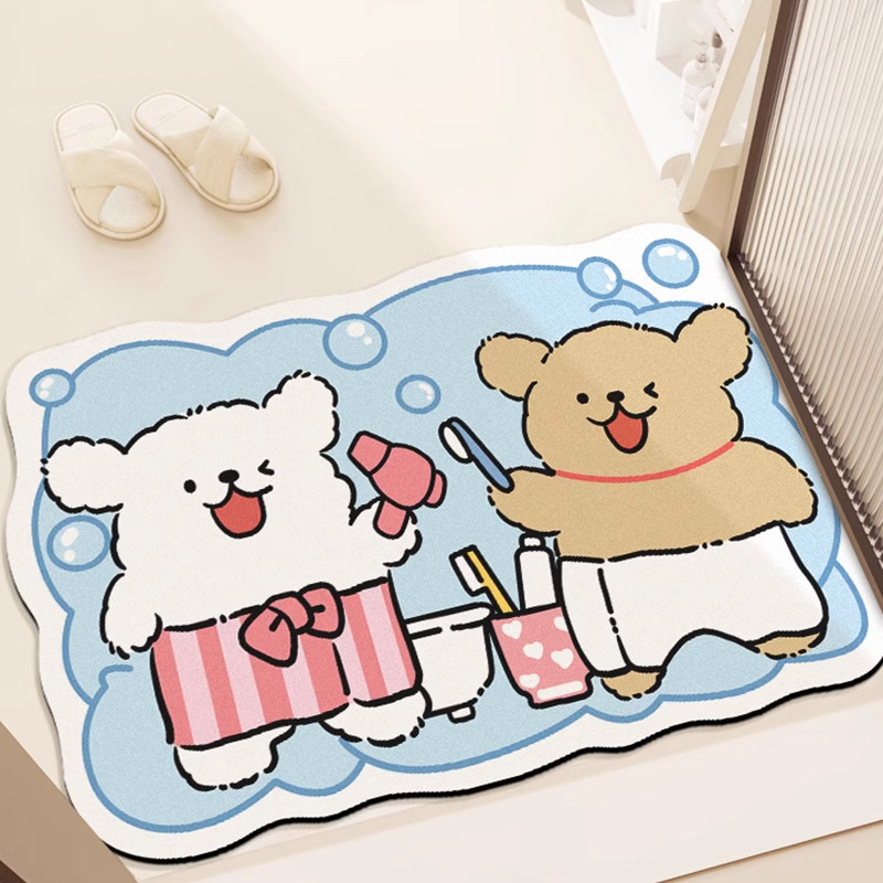 만화 규조토 진흙 욕실 바닥 매트, 샤워실 흡수 매트, 욕실 문, 욕실 화장실 속건성 미끄럼 방지 발 매트