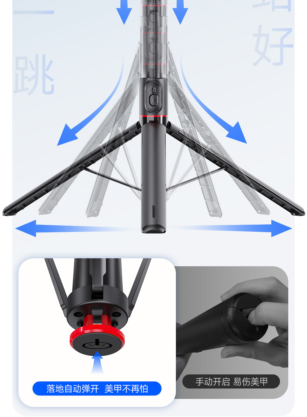 휴대 전화 셀카 스틱 바닥 삼각대 통합 휴대용 휴대용 슈팅 스탠드 드롭 스틱 점프 스틱 셀카 스틱