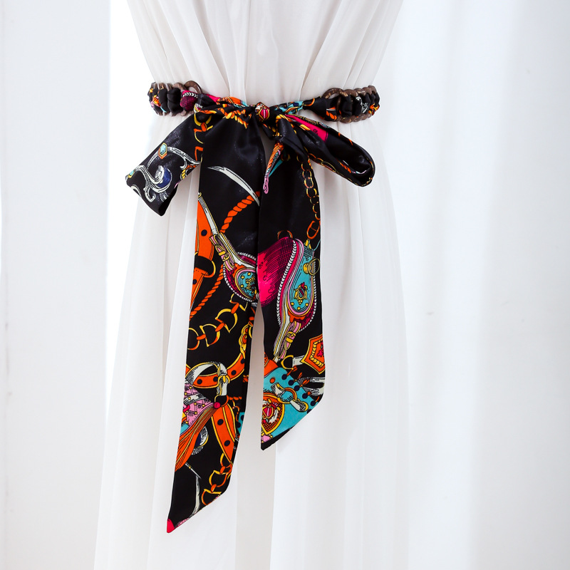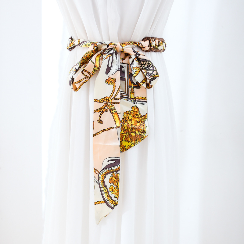 실크 스카프 벨트 여성 장식 스커트 올 매치 학생 천 바지 벨트 허리 체인 액세서리 넥타이 여름 간단한 새로운스토어 가기