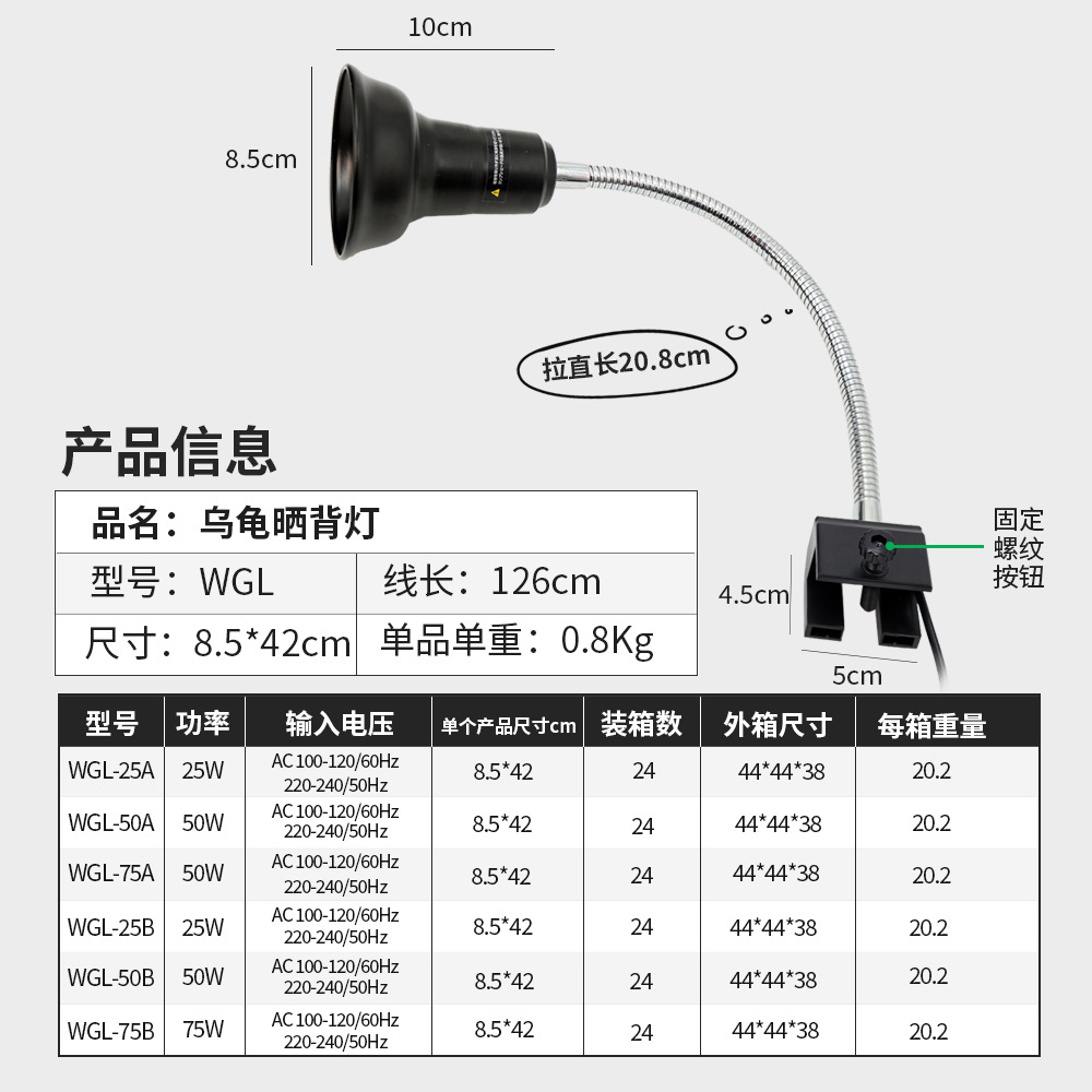 跨境爬宠乌龟晒背灯鱼缸灯溪流缸灯水草灯鱼缸射灯马印神灯尼奥水草灯冠科鱼缸夹灯乌龟灯爬宠灯美规欧规日规UVA/UVB光源杀菌消毒