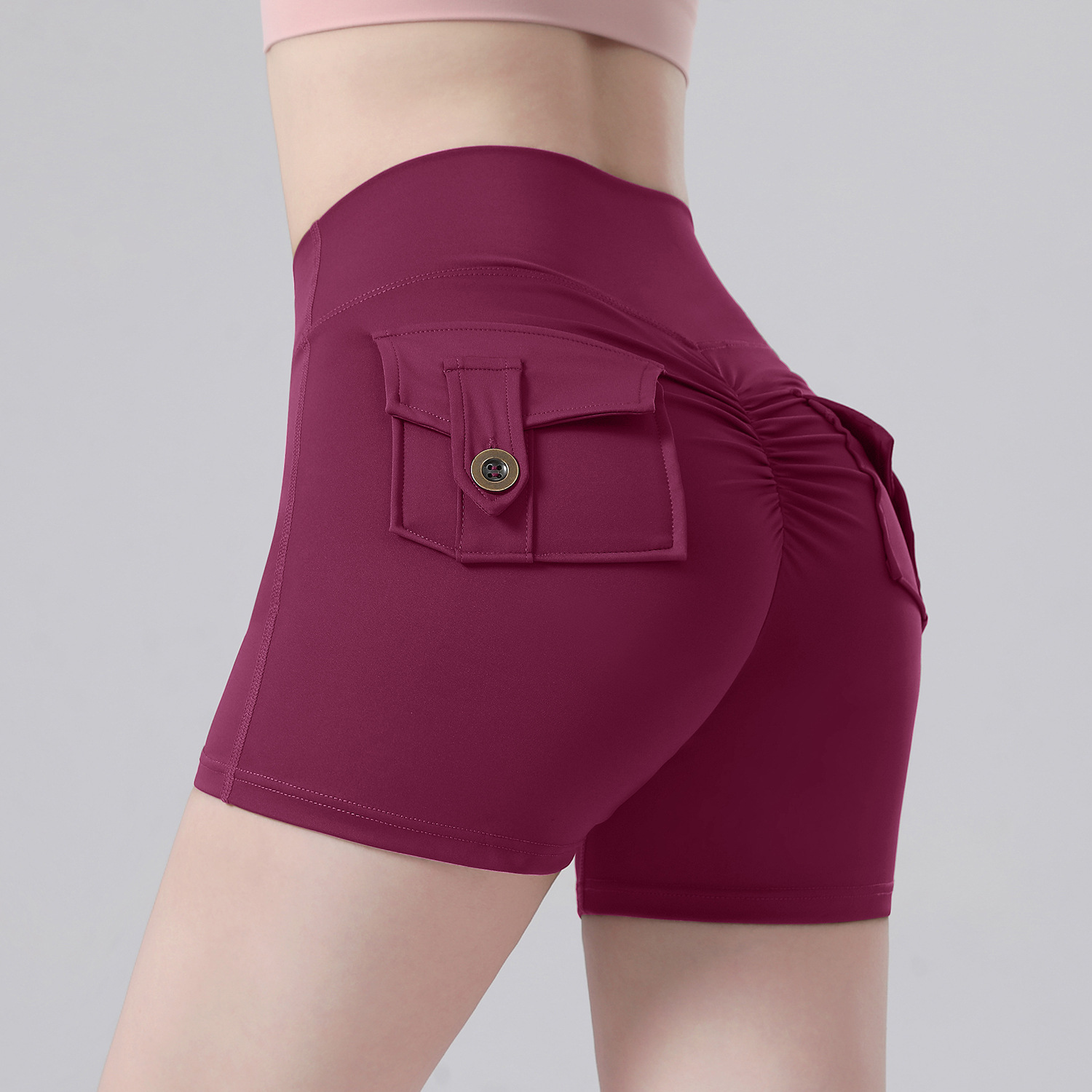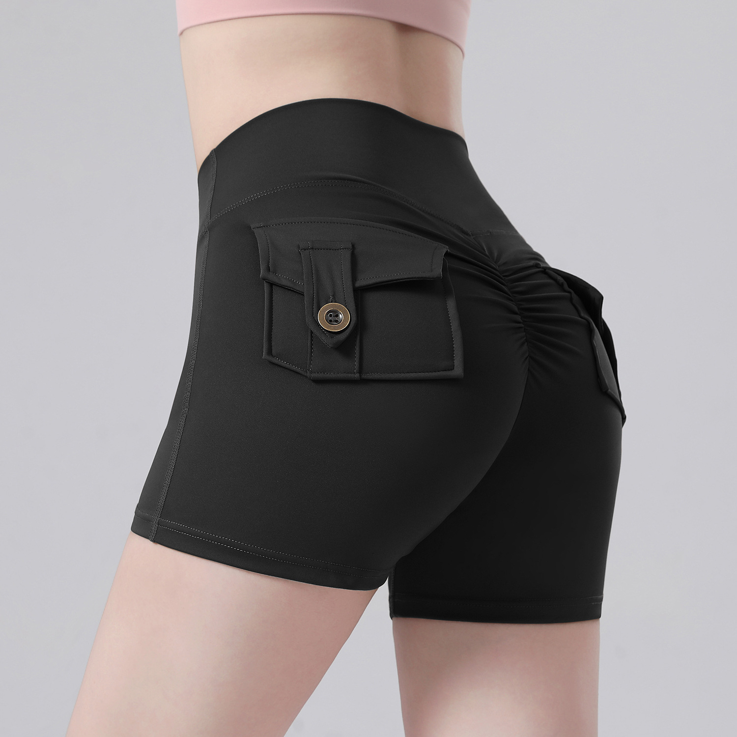 불편한 라인이 없는 크로스보더 스포츠 반바지, 속건성 복숭아 엉덩이, 누드 느낌, 엉덩이 리프팅 작업복 스타일 요가 피트니스 팬츠, 새로운 여름 스타일