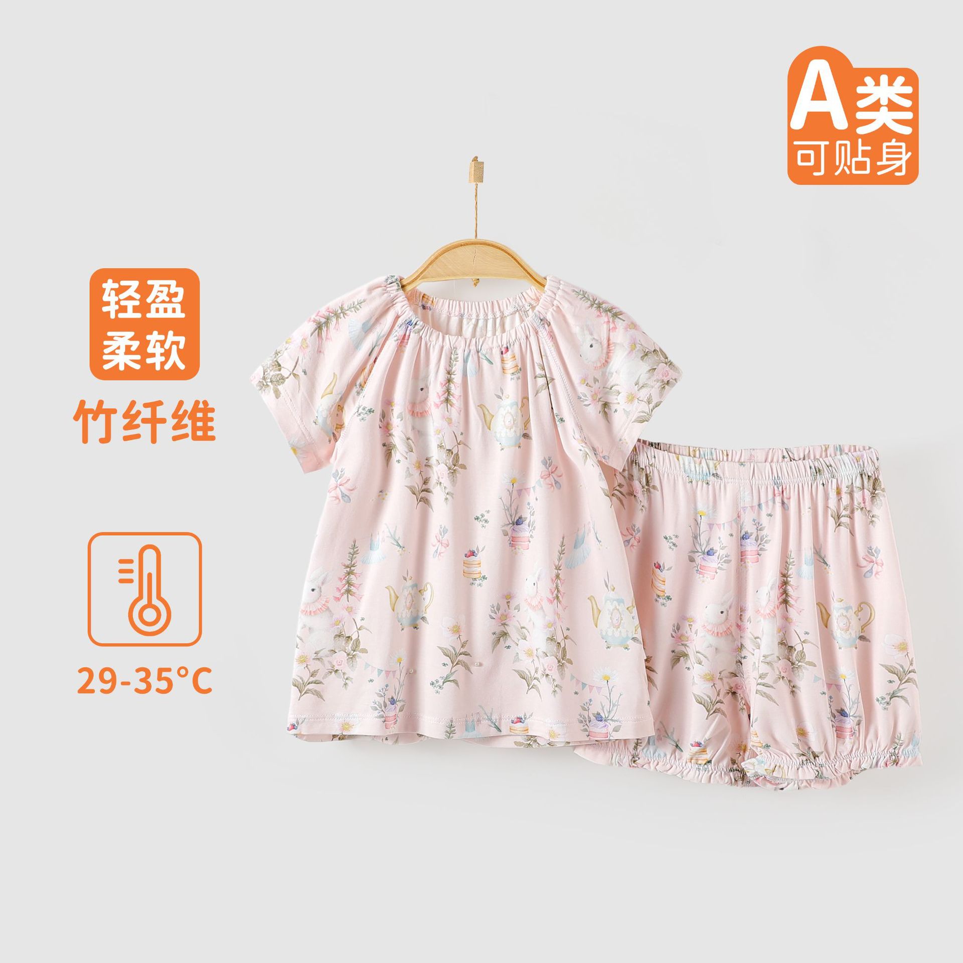 Yizijia 신생아 옷 아기 여름 반팔 분할 세트 대나무 섬유 반팔 투피스 통기성 세트