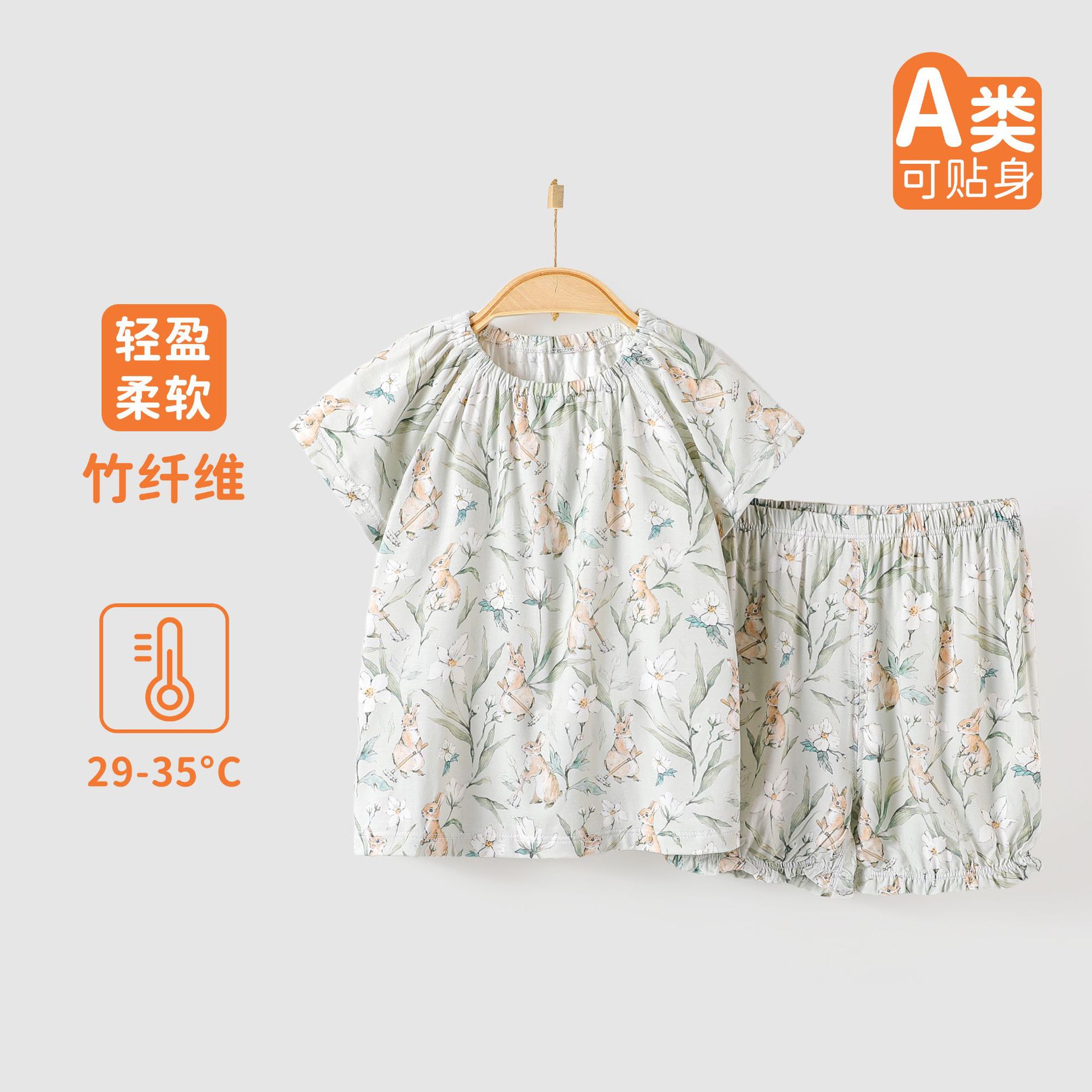 Yizijia 신생아 옷 아기 여름 반팔 분할 세트 대나무 섬유 반팔 투피스 통기성 세트스토어 가기