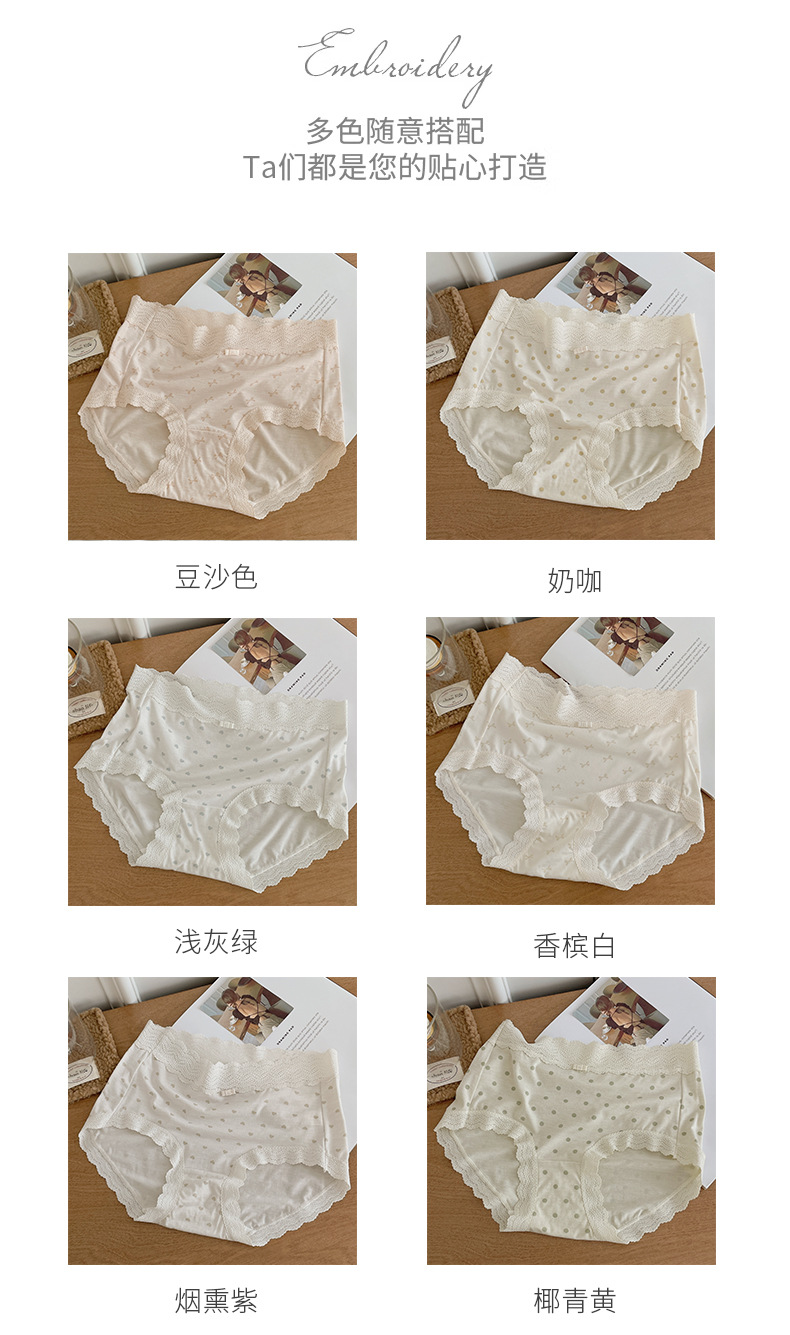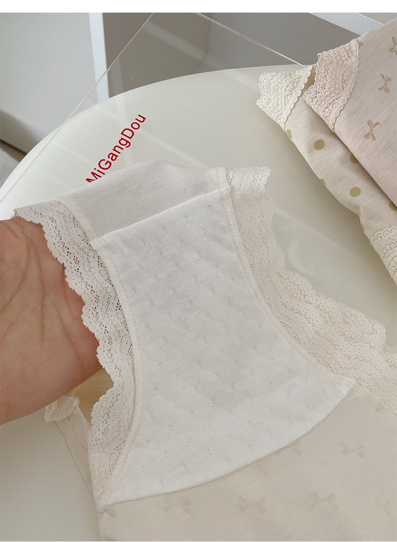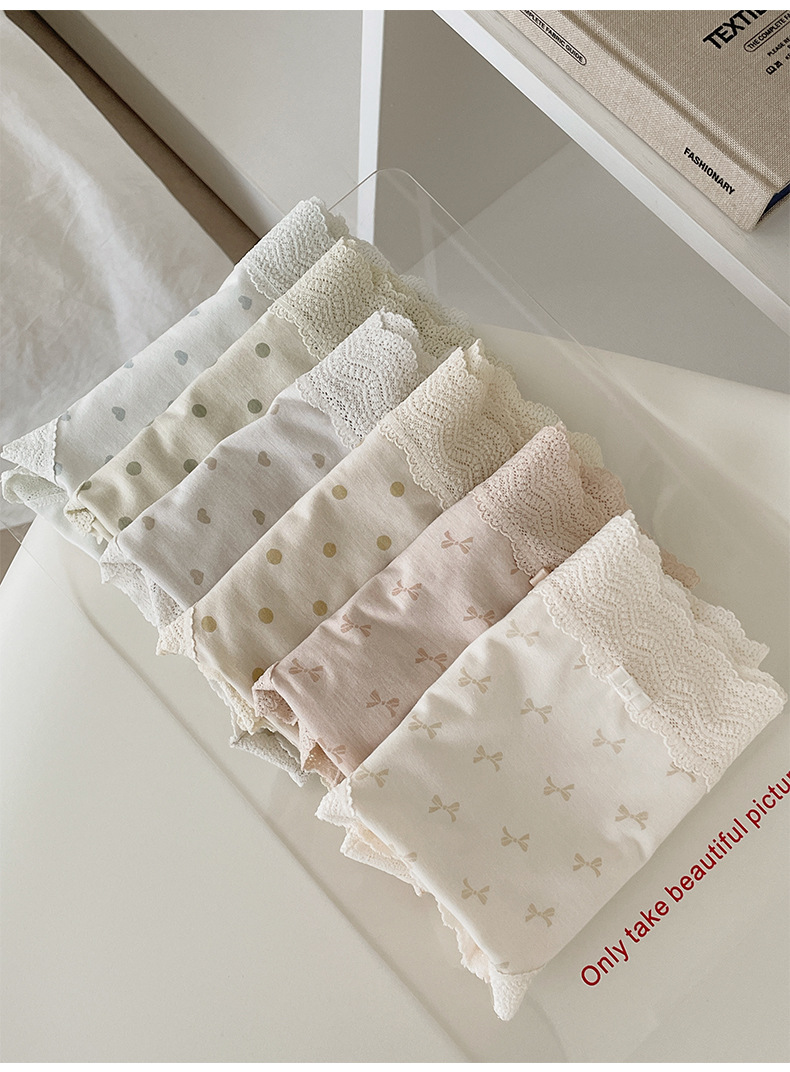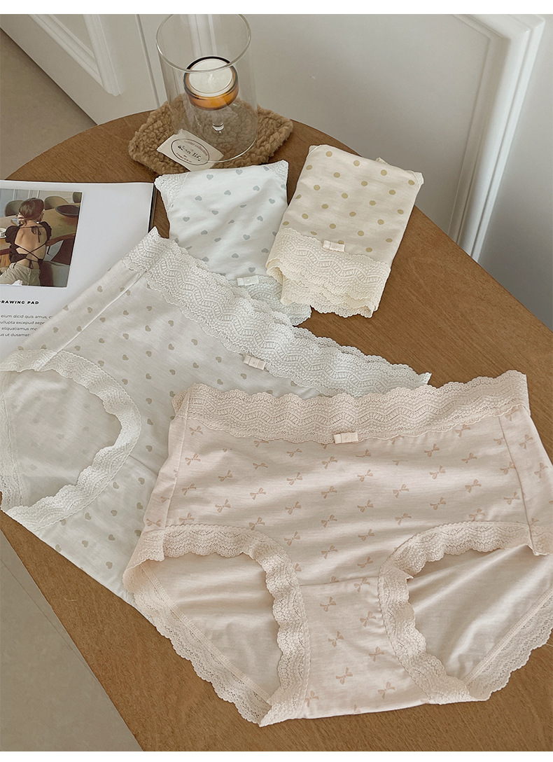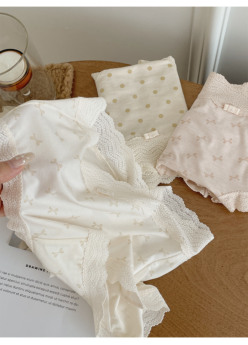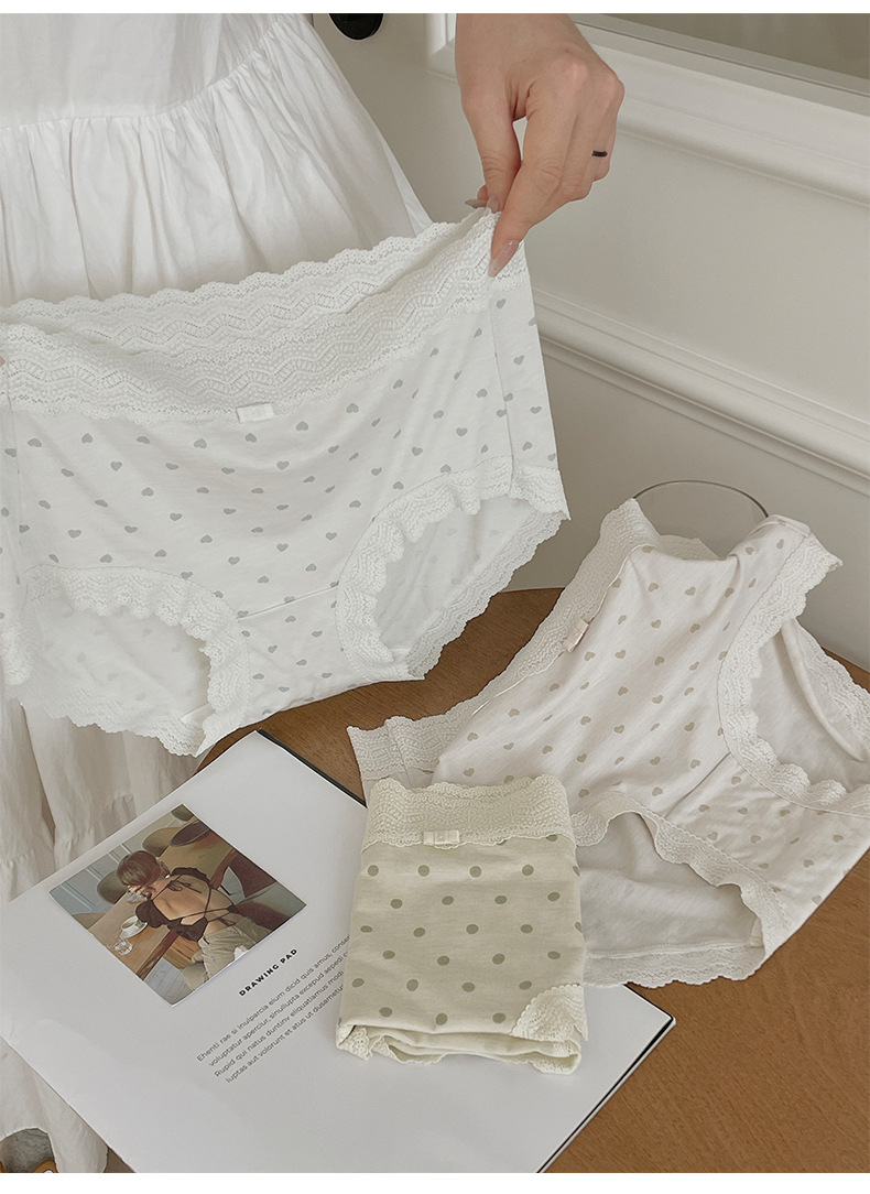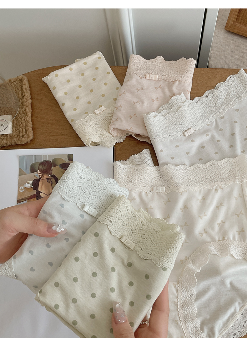 프랑스 스위트 레이스 폴로 도트 모달 소녀의 속옷 벗은 피부 친화적 인 비 추적 중간 허리 7A 하단 크로트 여성 반바지스토어 가기