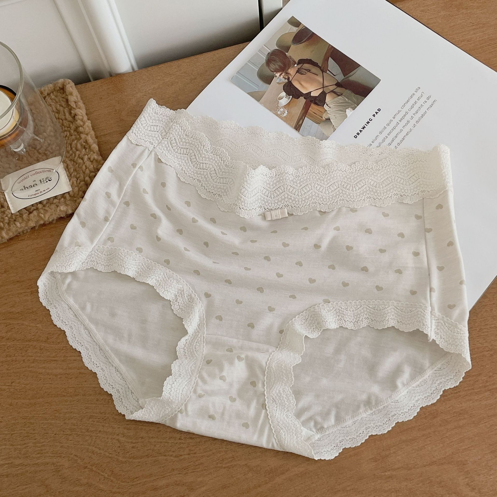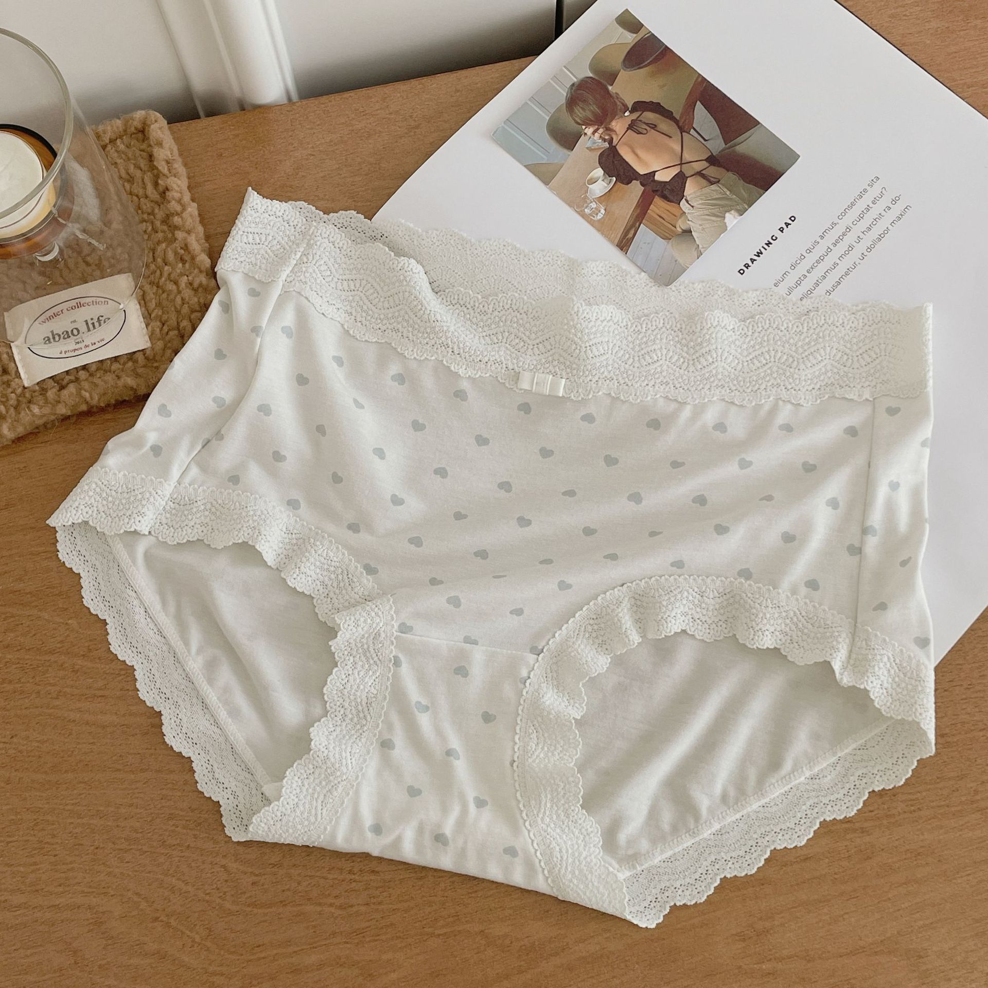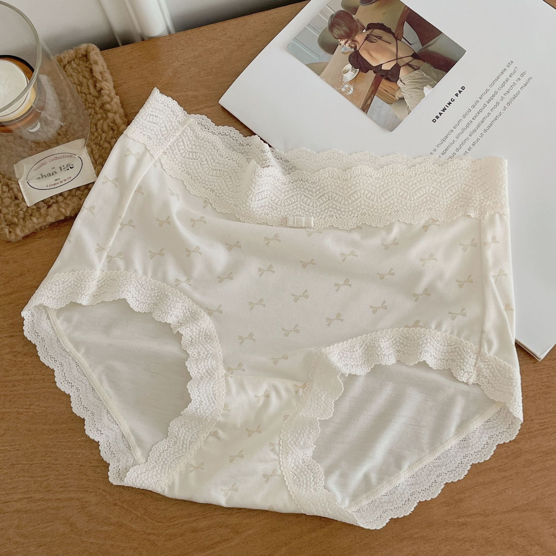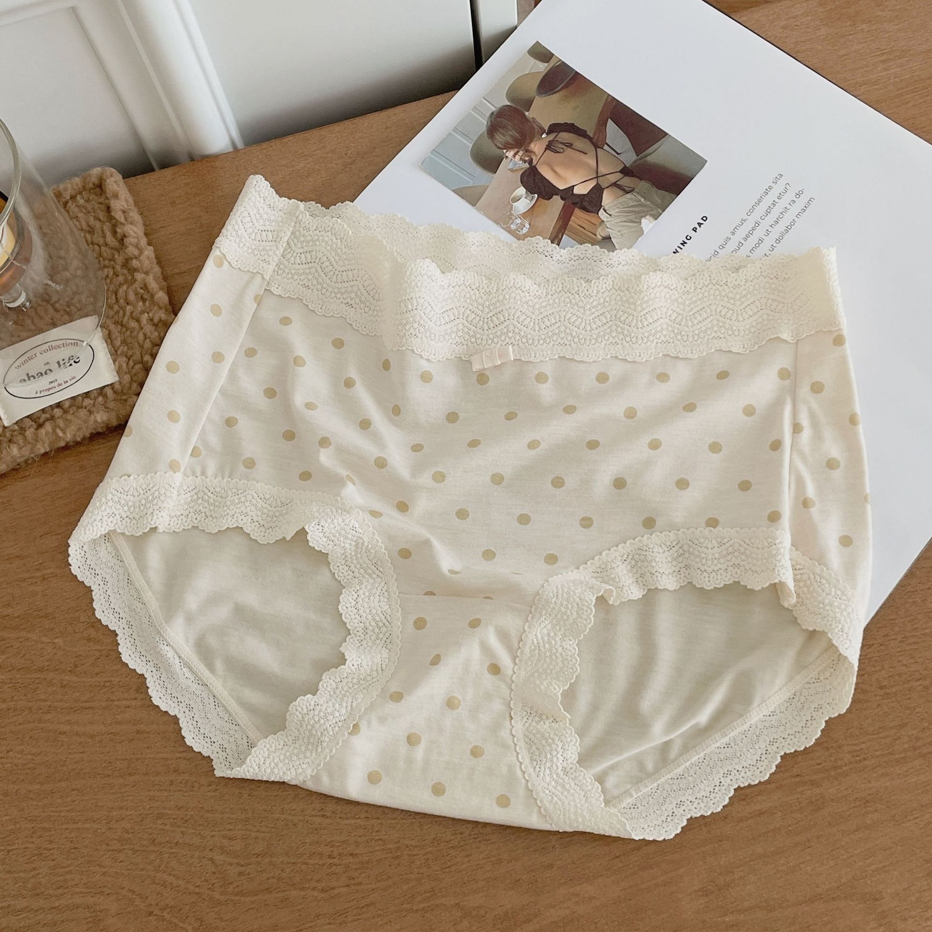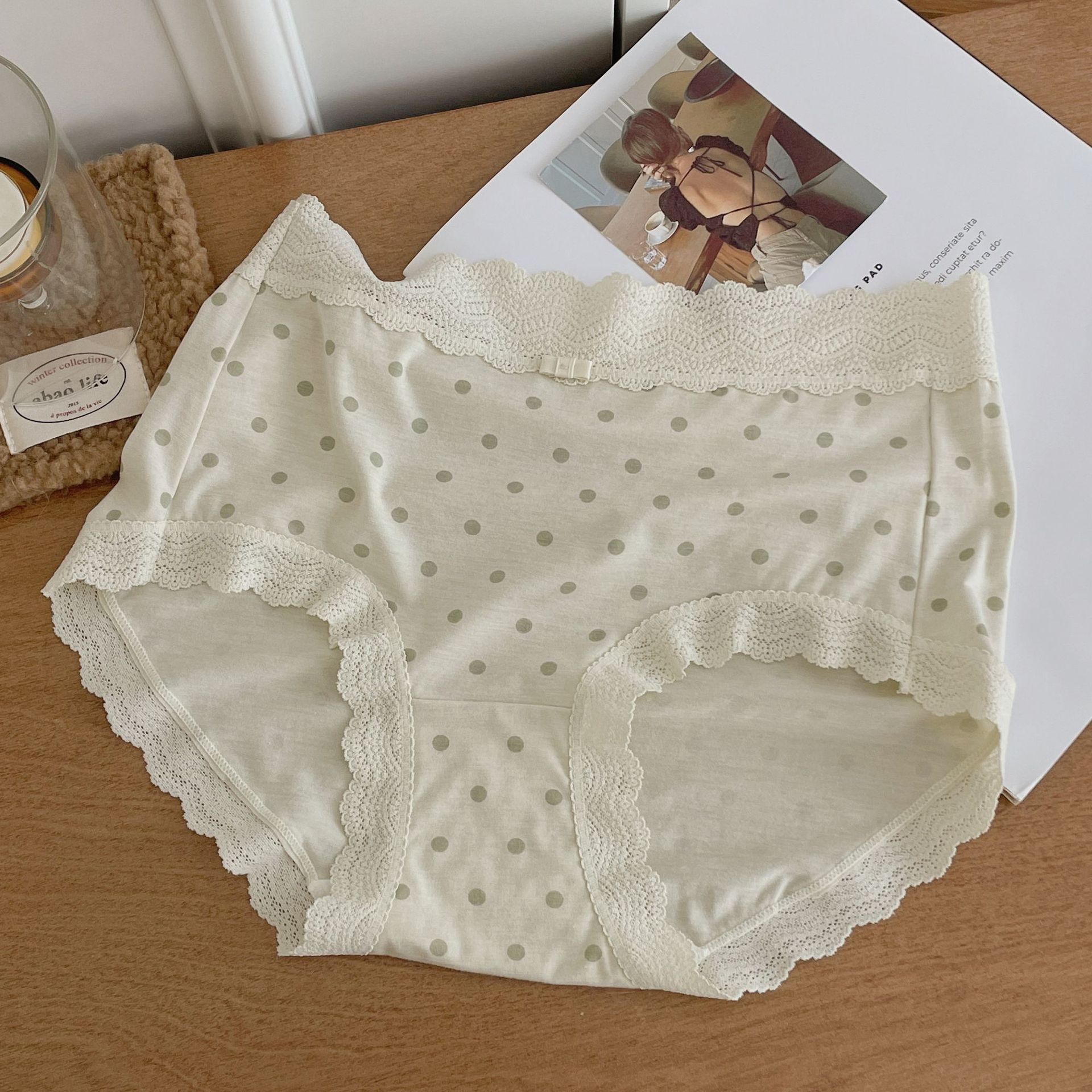 프랑스 스위트 레이스 폴로 도트 모달 소녀의 속옷 벗은 피부 친화적 인 비 추적 중간 허리 7A 하단 크로트 여성 반바지스토어 가기