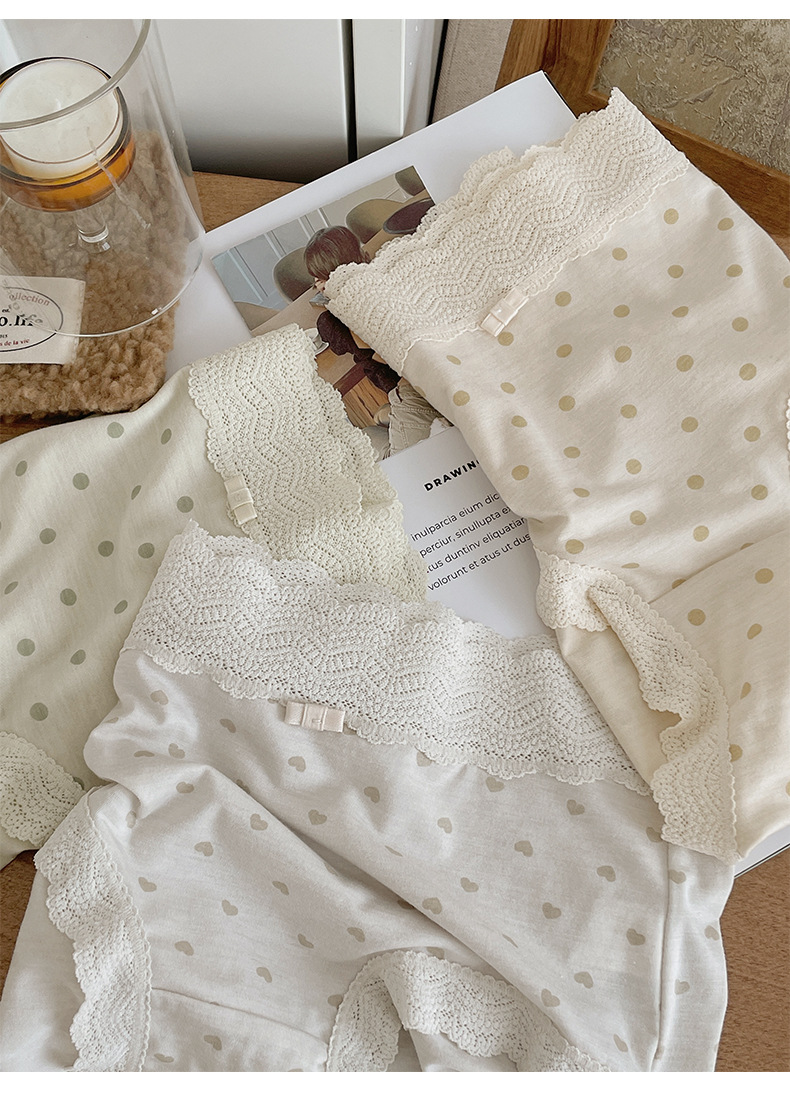 프랑스 스위트 레이스 폴로 도트 모달 소녀의 속옷 벗은 피부 친화적 인 비 추적 중간 허리 7A 하단 크로트 여성 반바지