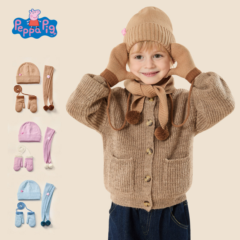 Peppa Pig 정품 공동 브랜드 겨울 3피스 세트 어린이 두꺼운 따뜻한 모자 스카프 장갑 선물 상자