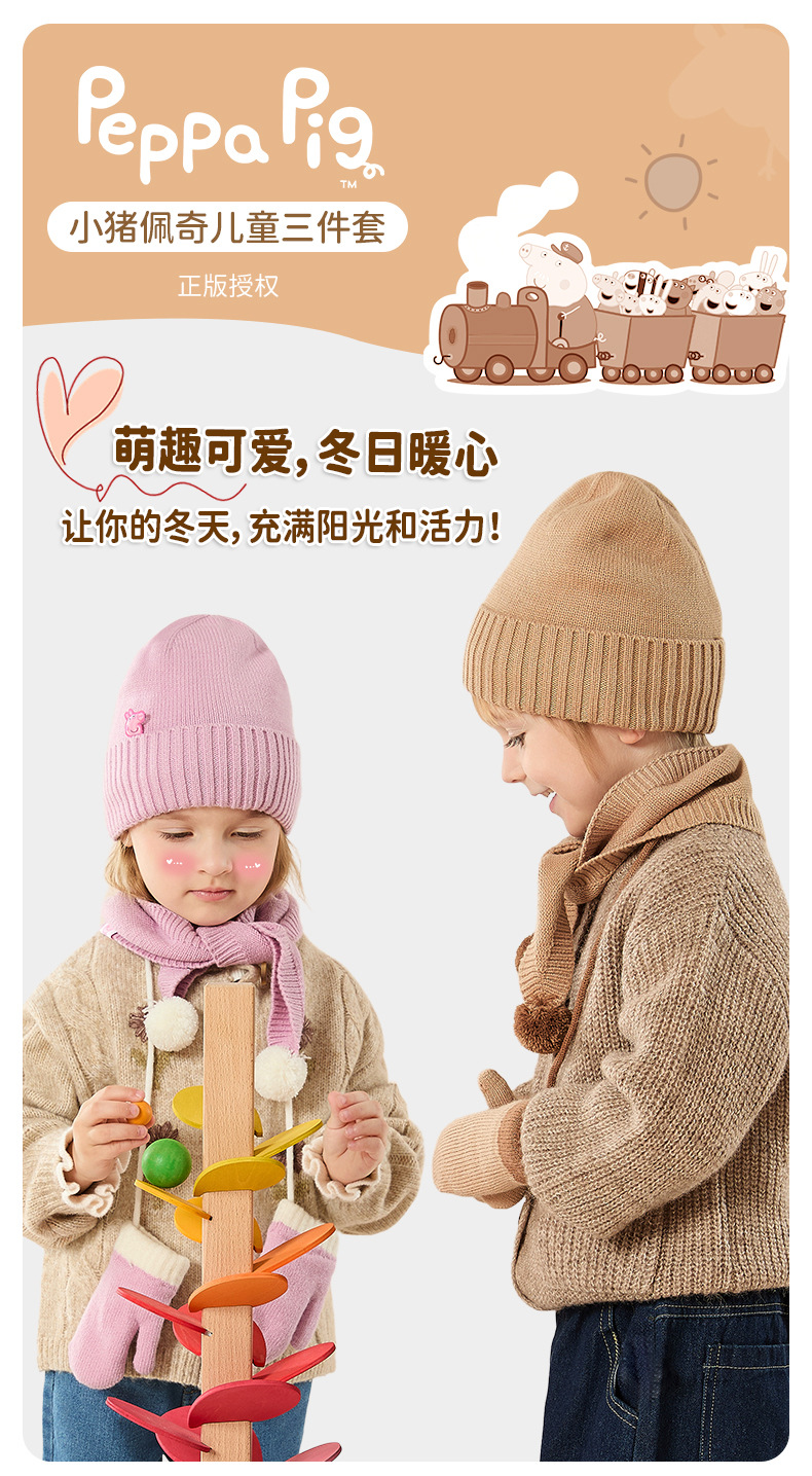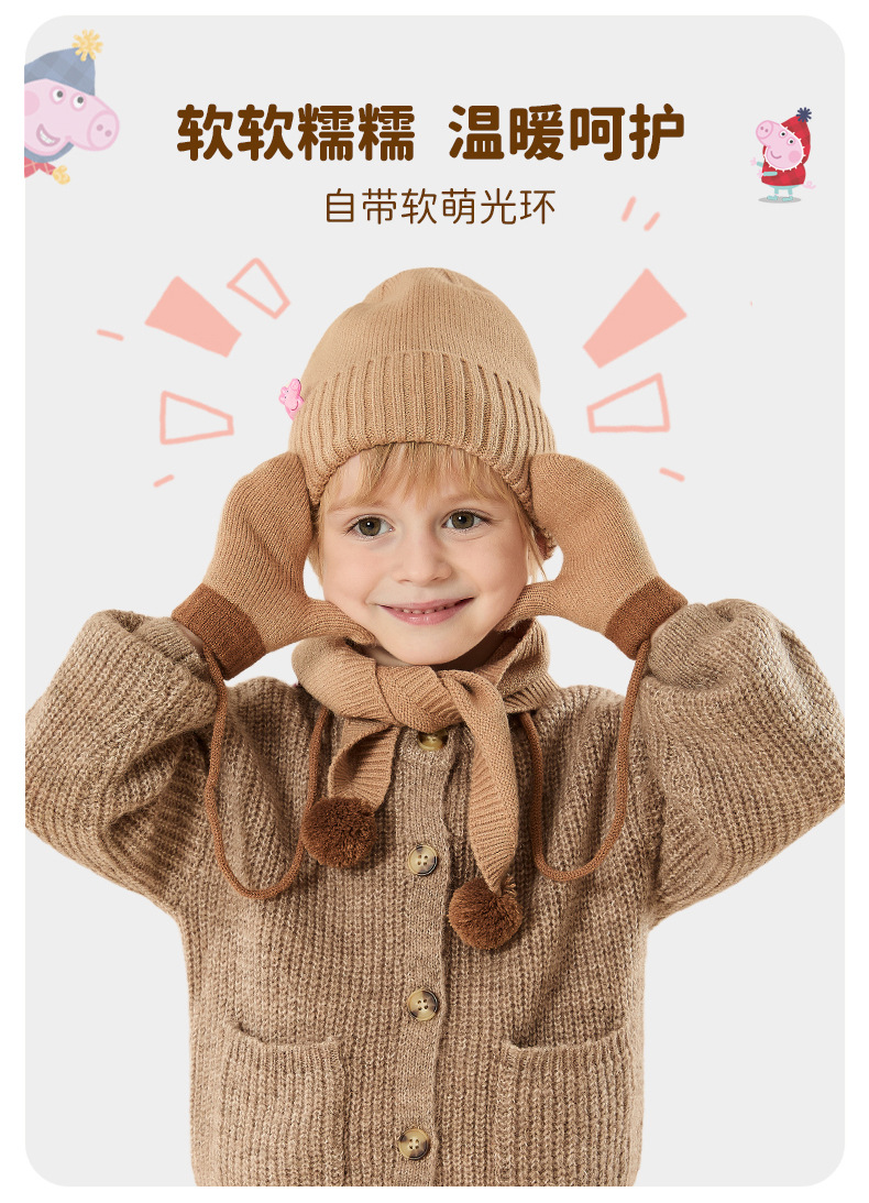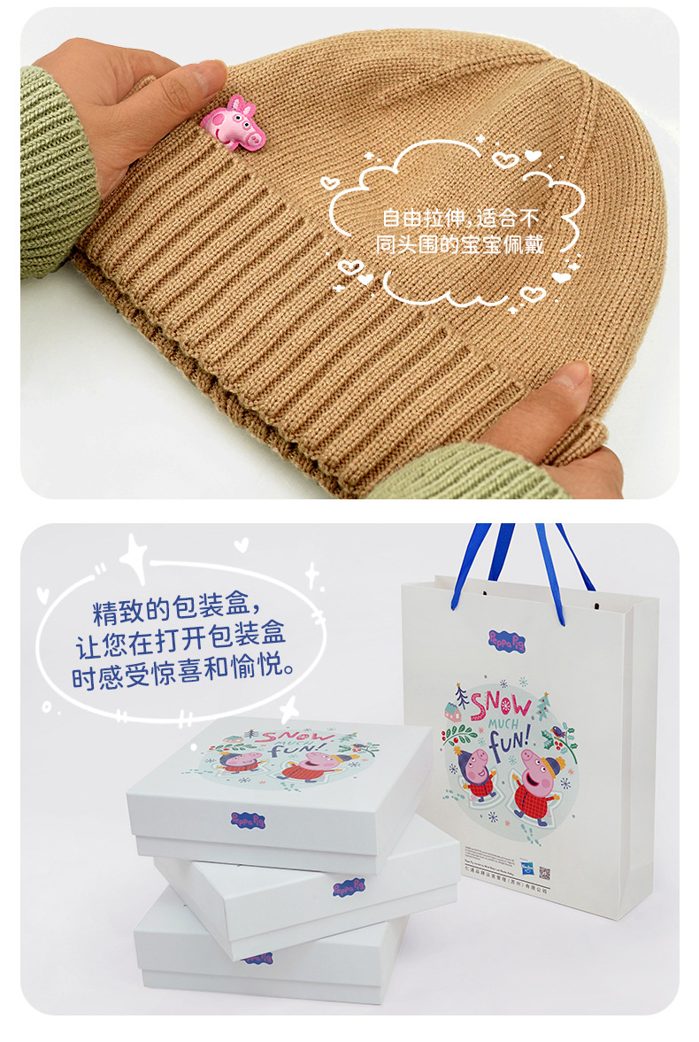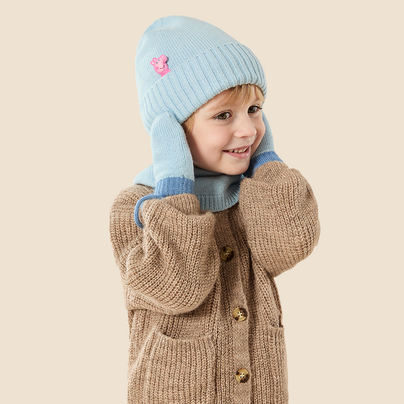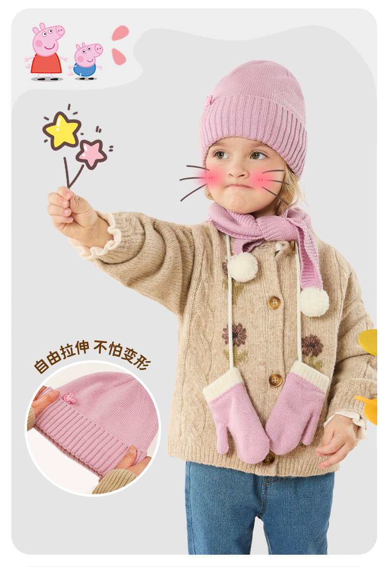 Peppa Pig 정품 공동 브랜드 겨울 3피스 세트 어린이 두꺼운 따뜻한 모자 스카프 장갑 선물 상자스토어 가기