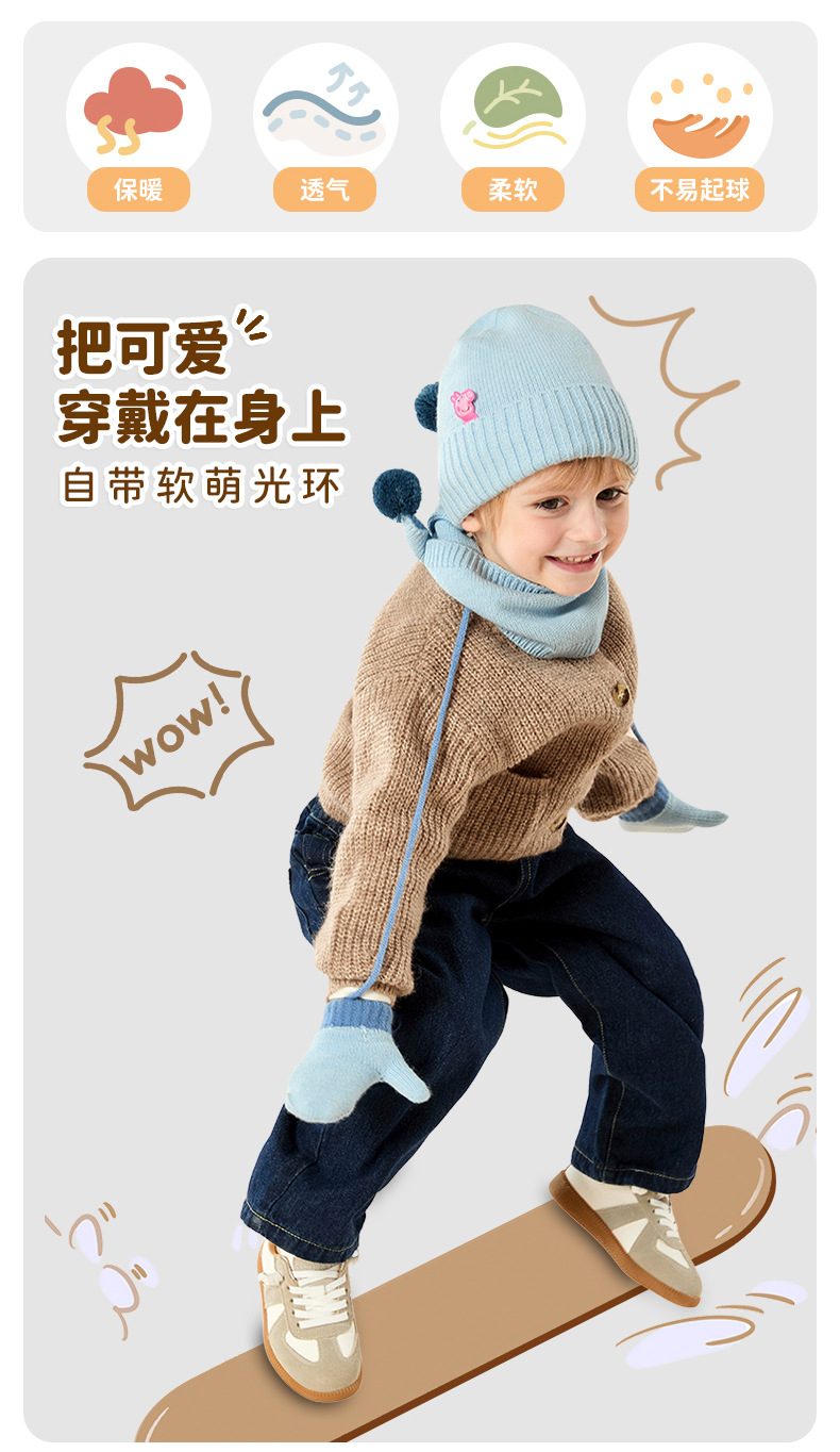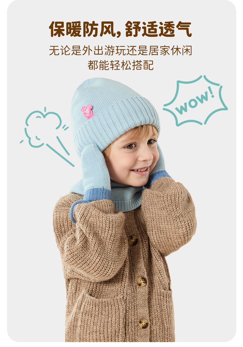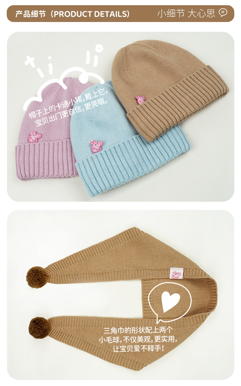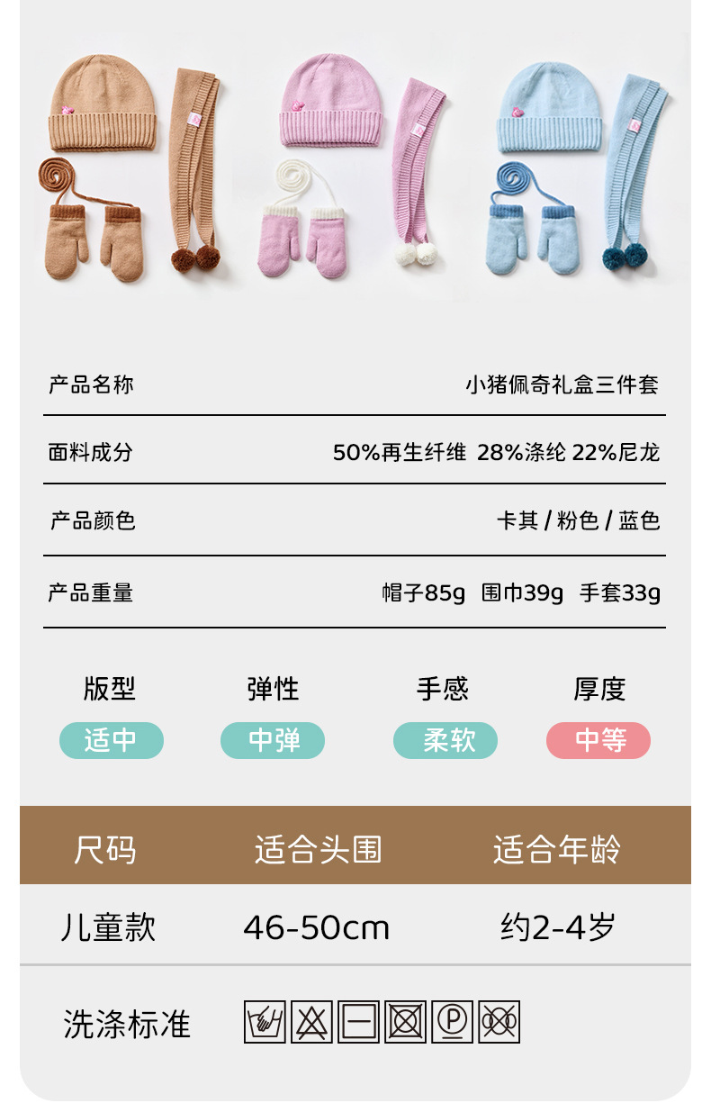 Peppa Pig 정품 공동 브랜드 겨울 3피스 세트 어린이 두꺼운 따뜻한 모자 스카프 장갑 선물 상자스토어 가기