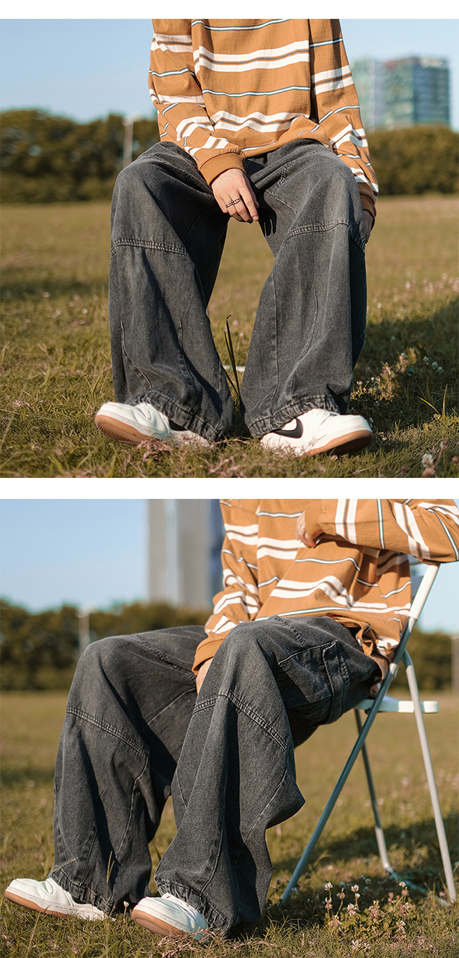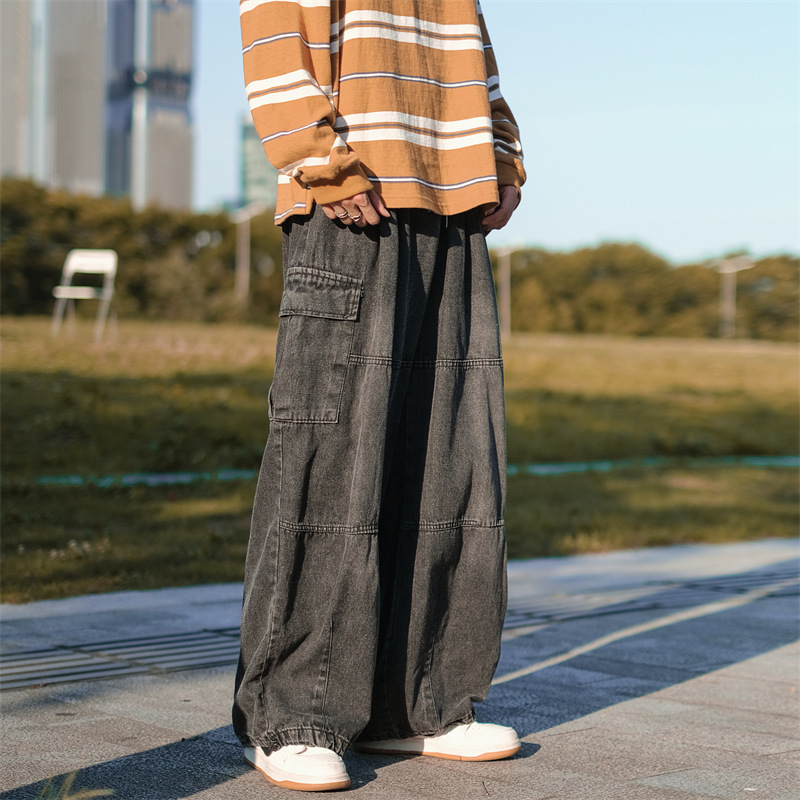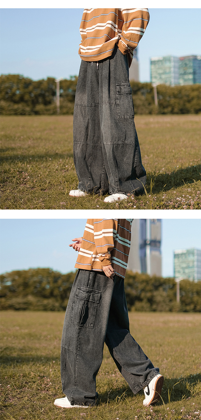 봄, 가을 남성용 와이드 레그 청바지 루즈 스트레이트 오버올 인 트렌디 일본 복고풍 하이 스트리트 롱 팬츠스토어 가기