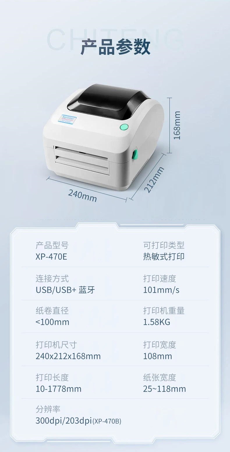 Xinye XP-470E HD 바코드 라벨 프린터 열 스티커 300dpi 국경 간 Shopee Express 단일-