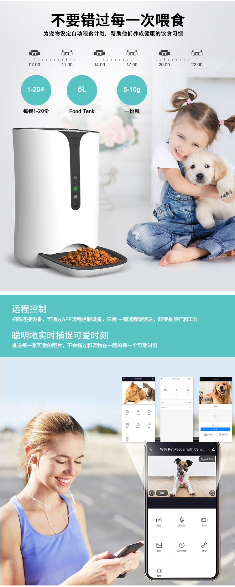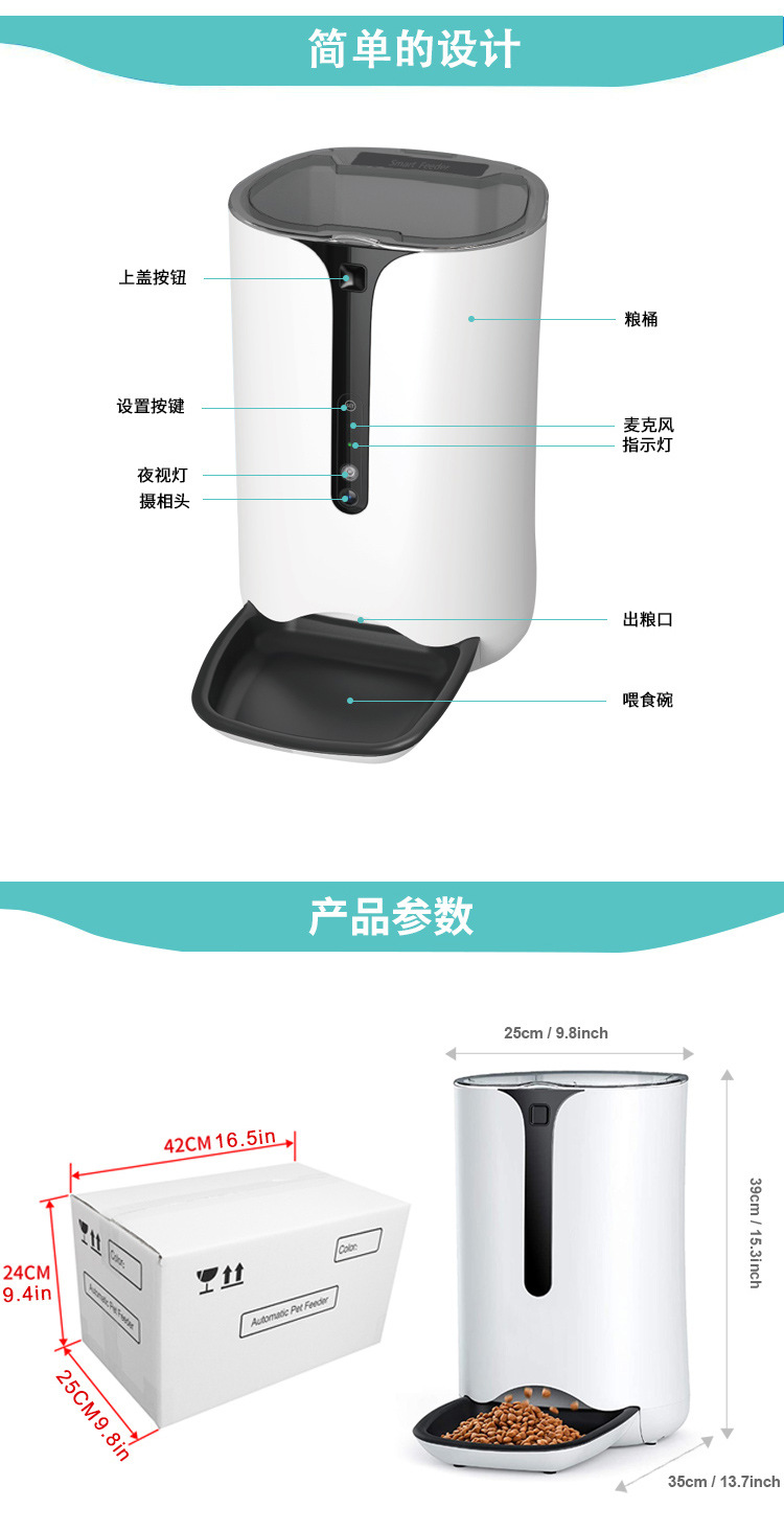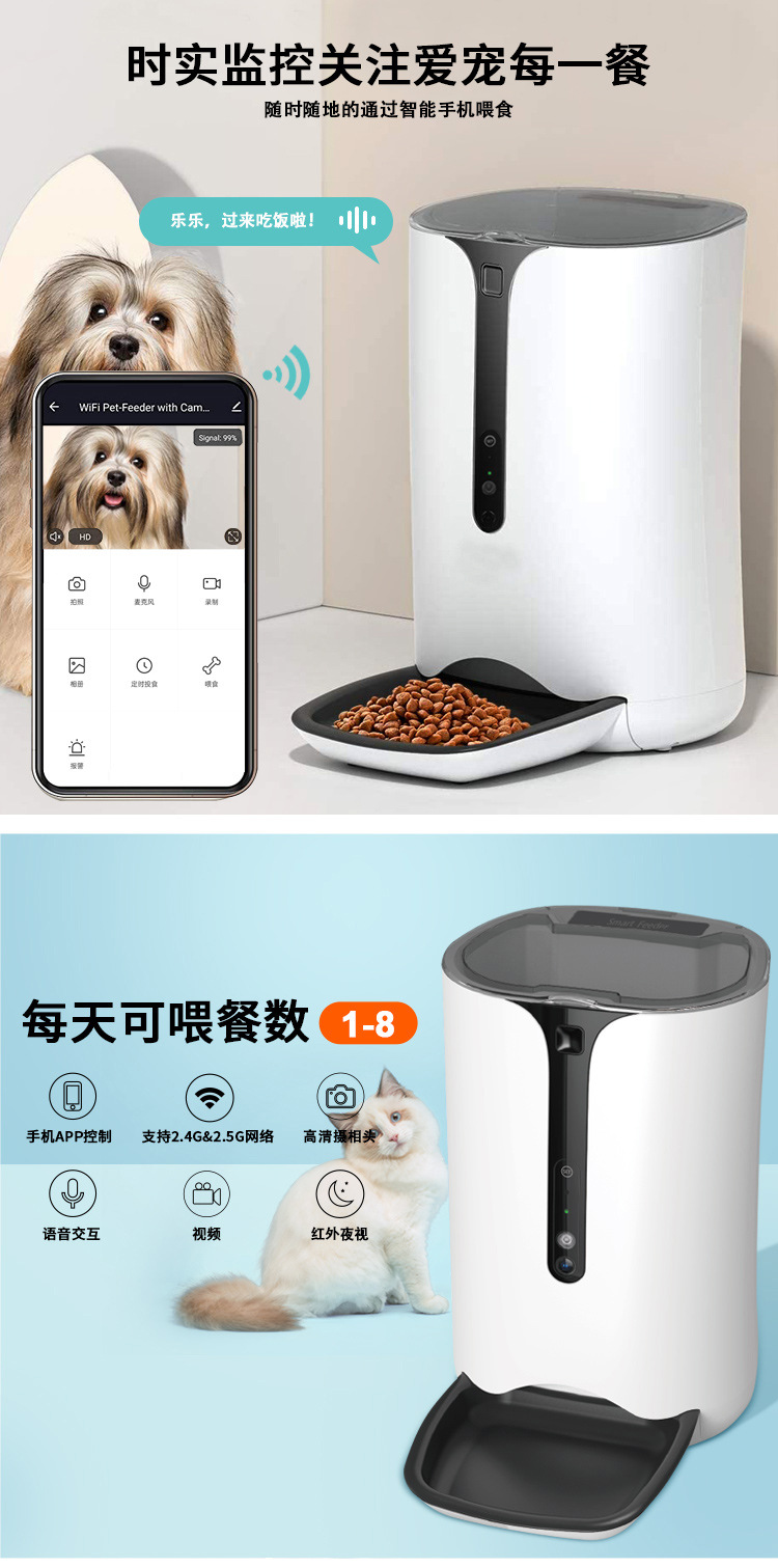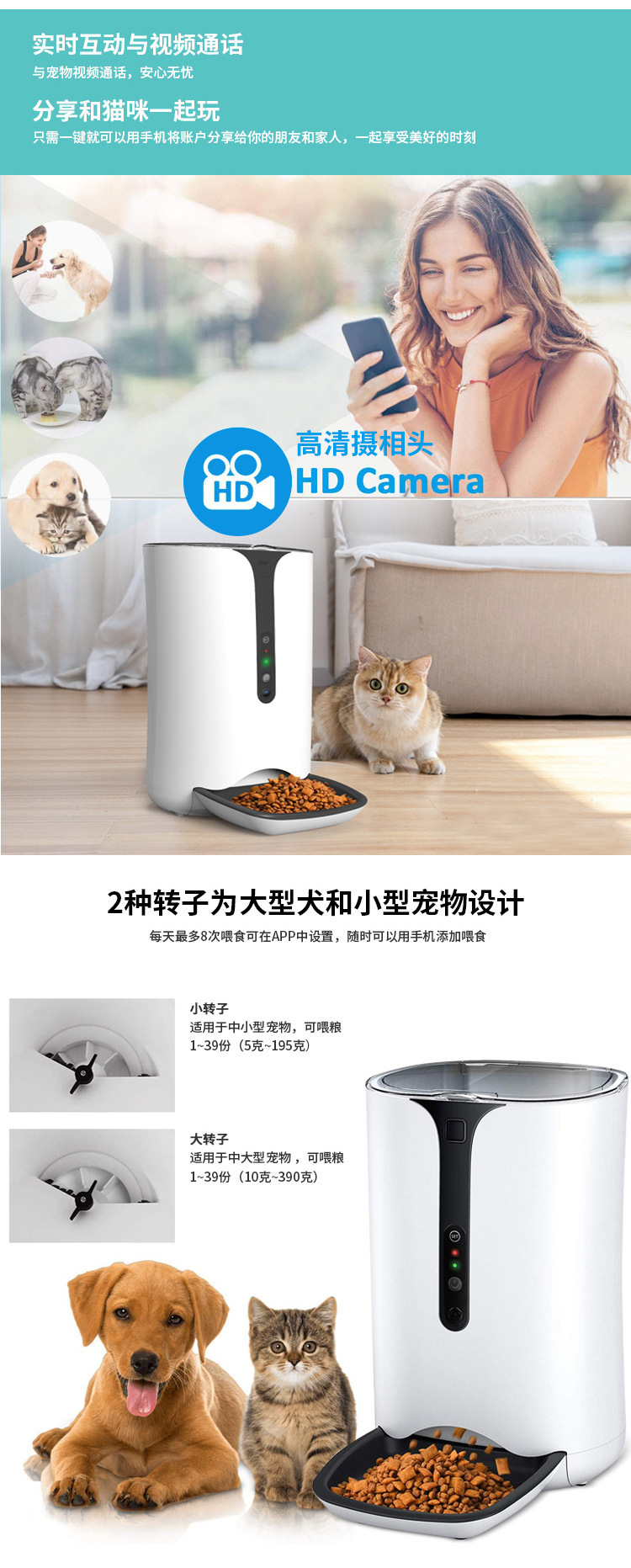 스마트 애완동물 피더 원격 WIFI 고화질 비디오 음성 모니터링 7L 스마트 고양이 및 개 피더스토어 가기