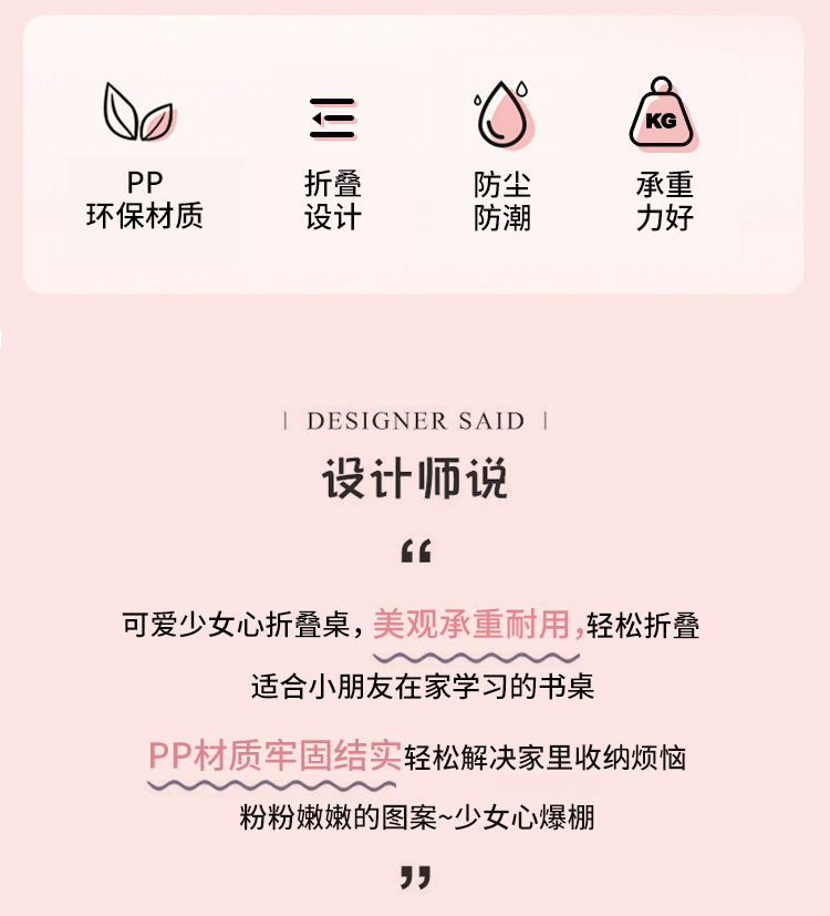 • 핑크 테이블 [내하중 50kg] 높이 38CM