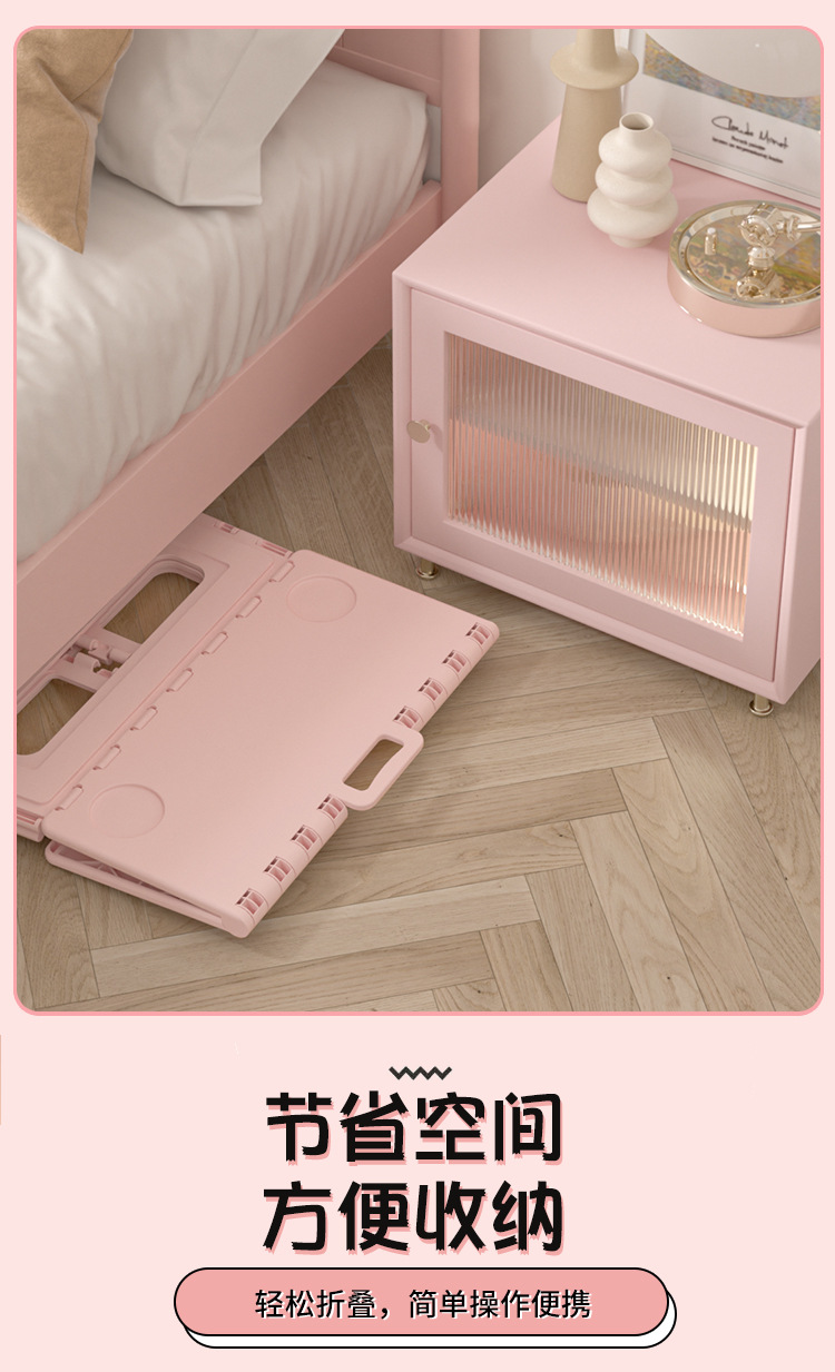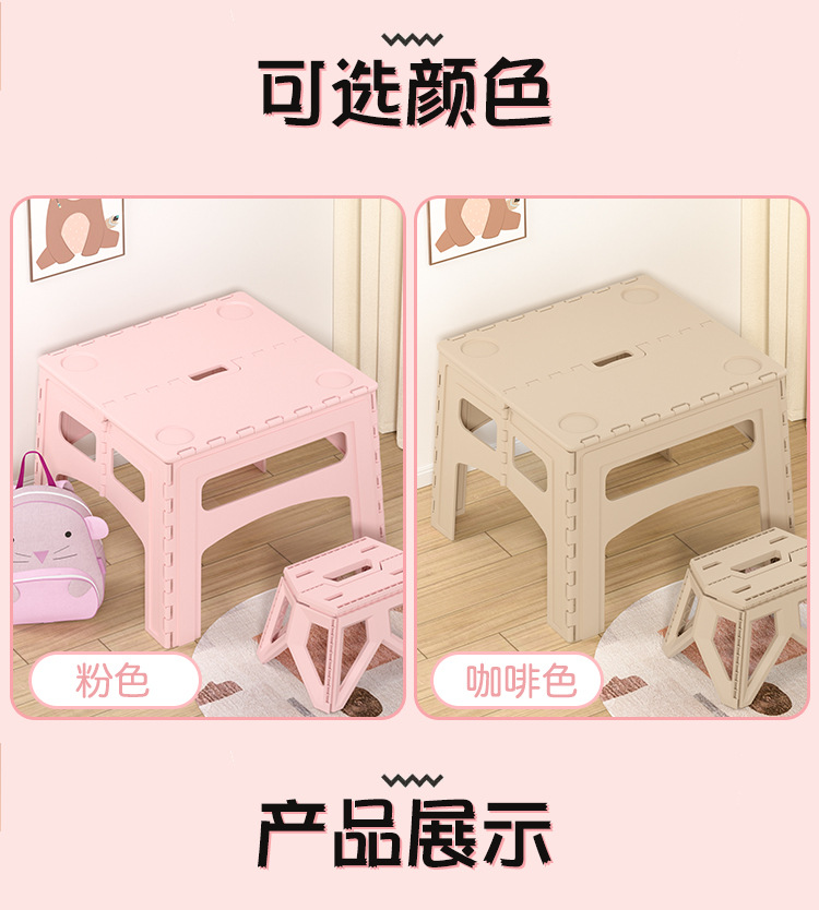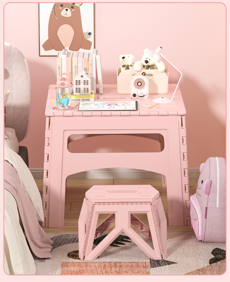 • 핑크 접이식 스툴 [외접이식 톨 모델] 내하중 100kg