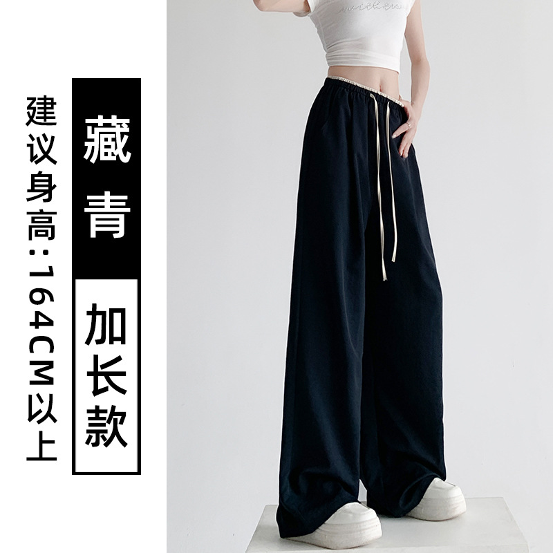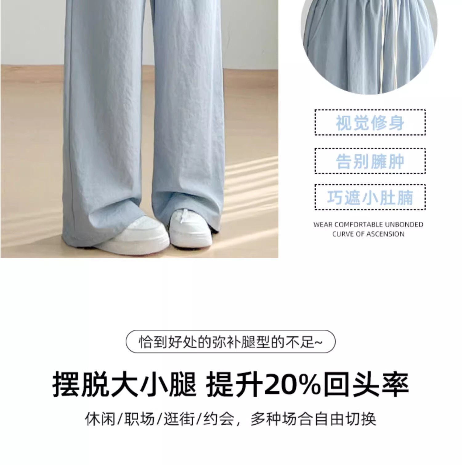 블루 아이스 실크 넓은 다리 바지 여성 여름 얇은 2025 새로운 높은 허리 느슨한 슬리밍 휴식 좁은 시원한 바지스토어 가기