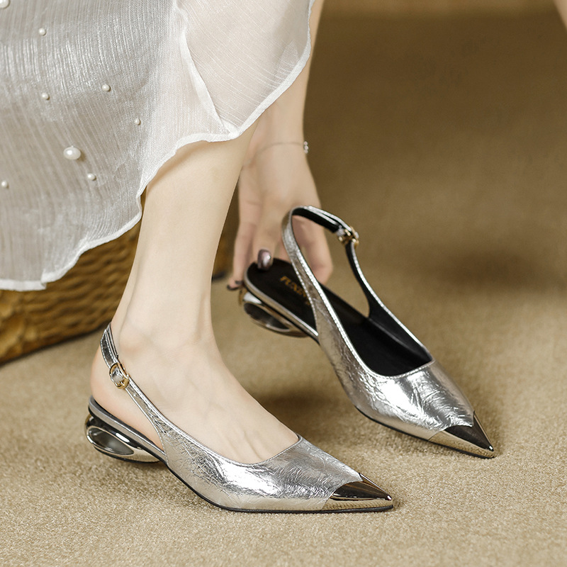 Fortune Girl 2025 새로운 두꺼운 굽 샌들 여성용 메탈릭 발가락 샌들 로우 힐 미드 힐 여성용 여름 캐주얼 신발스토어 가기