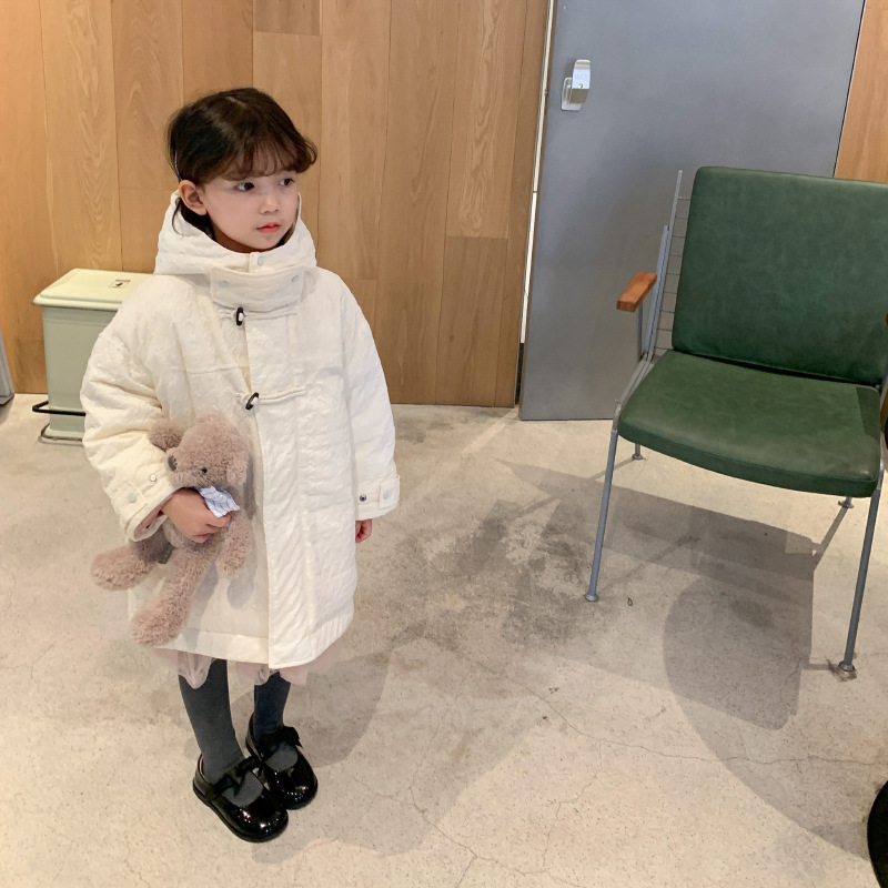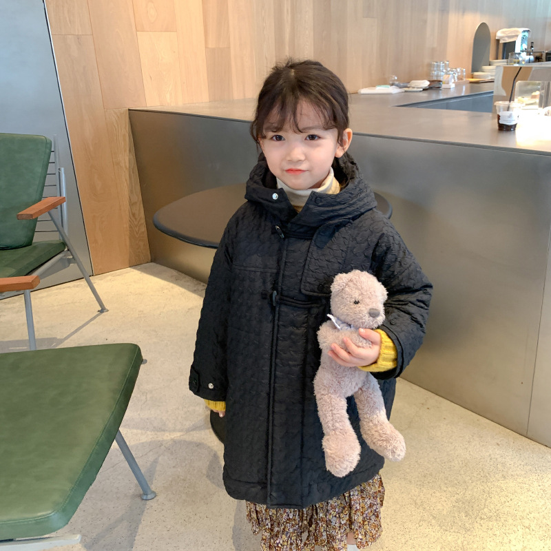 어린 소녀를위한 어린이 옷 소녀 겨울 새로운 2 색 Houndstooth 코튼 패딩 재킷 중간 길이의 따뜻한 재킷스토어 가기