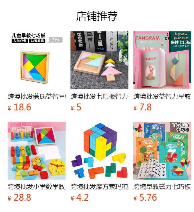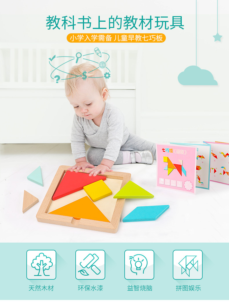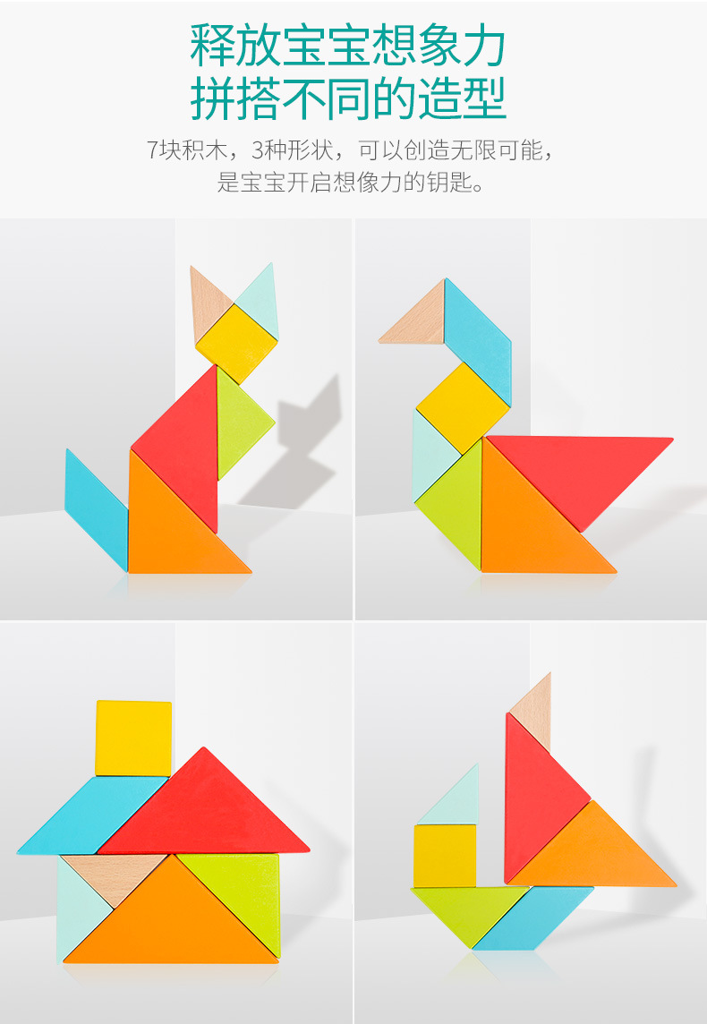 학생을 위한 크로스보더 도매 너도밤나무 tangram, 창의적인 기하학 퍼즐, 교육용 조기 교육 어린이 장난감 및 교육 보조 장치스토어 가기