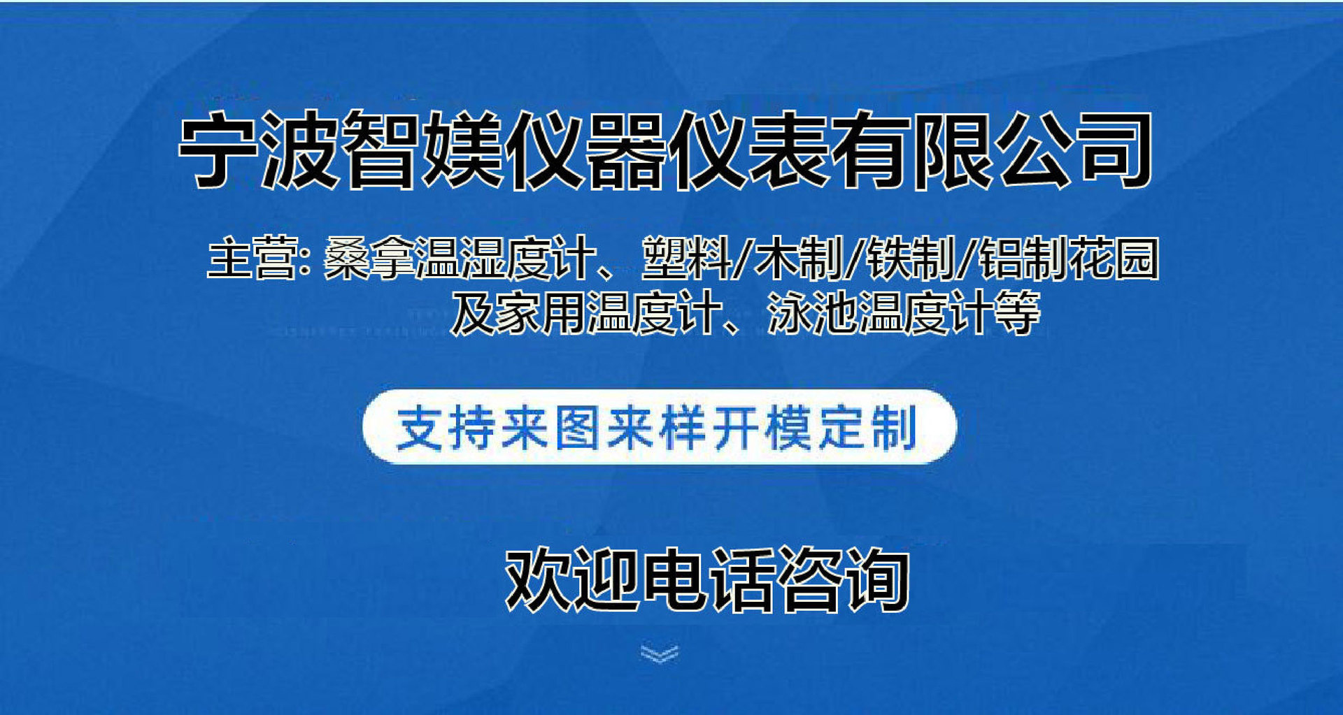 我厂拥有20余台注塑机以及配套完善的木材厂和五金厂,产品涉及桑拿温湿度计、塑料/,木制/铁制/铝制花园及家用温度计、泳池温度计等,欢迎国内外客户莅临验厂,洽谈业务
