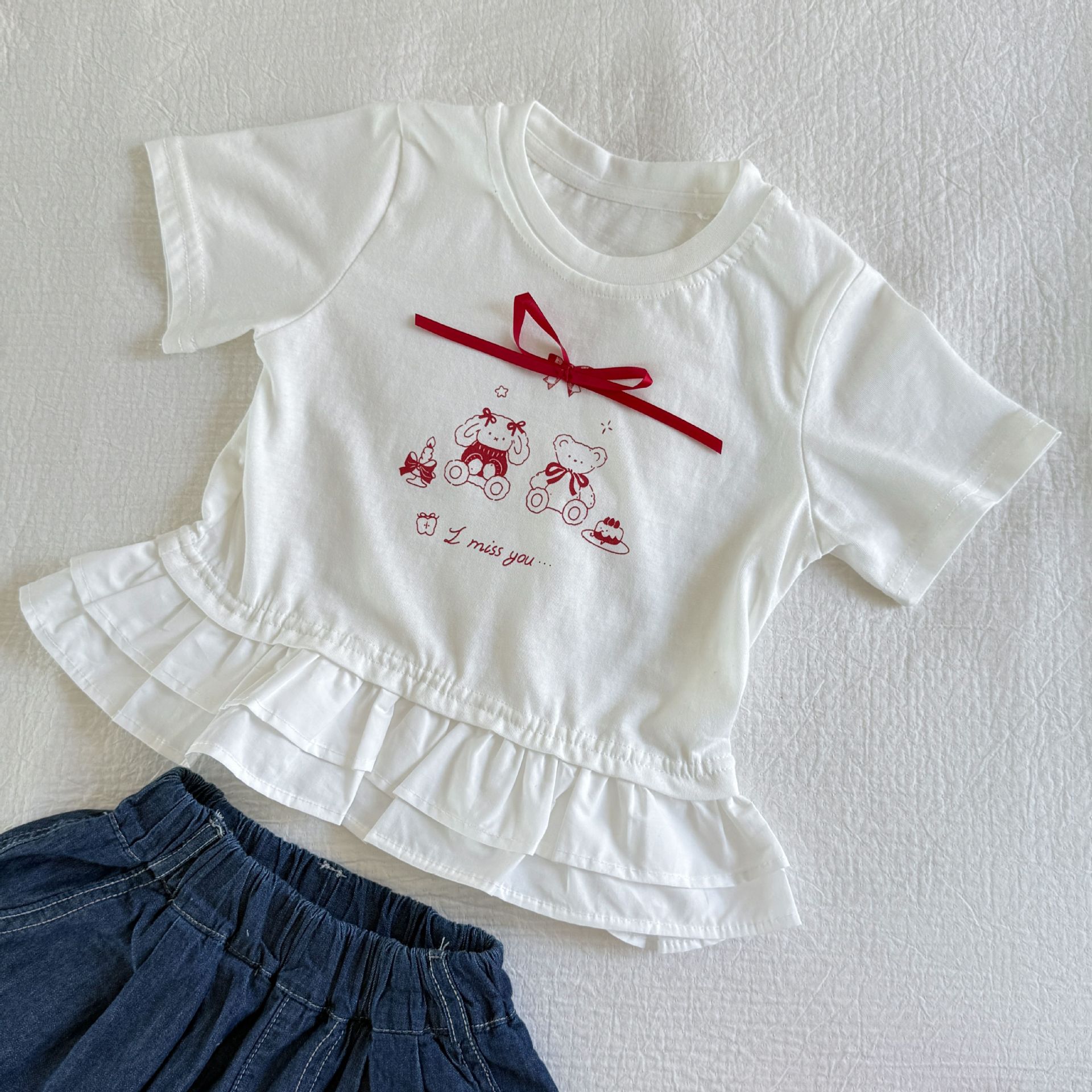 여자 티셔츠 짧은 소매 25 새로운 여름 한국 스타일 만화 귀여운 최고 여성 Ins 스타일 달콤한 활 탑