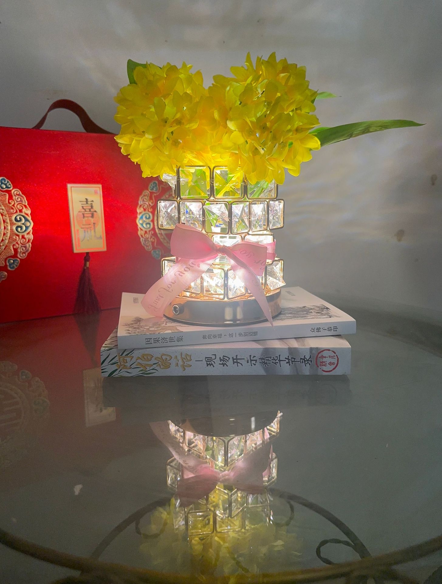 • 옐로우 크리스탈 루빅스 큐브 수국 램프