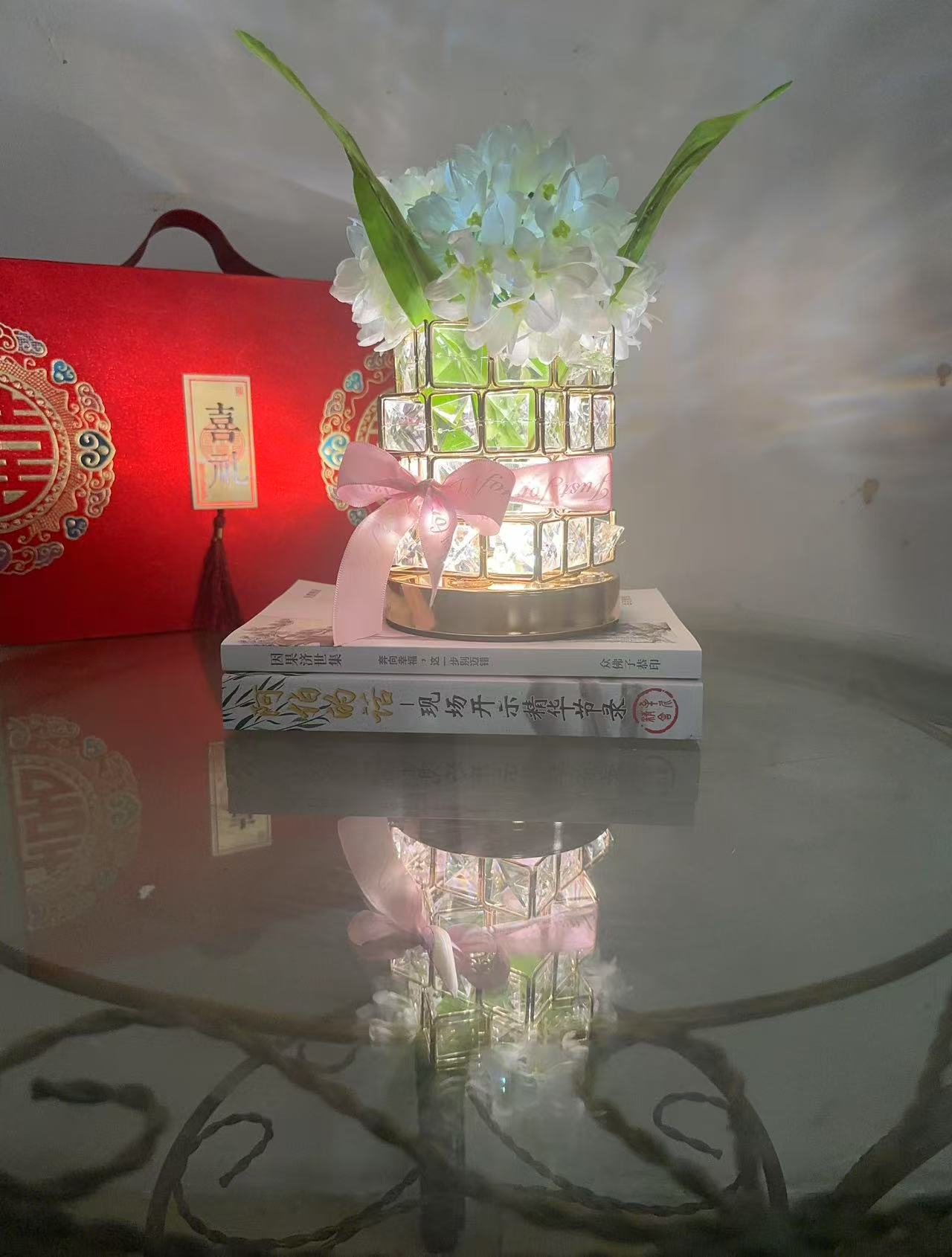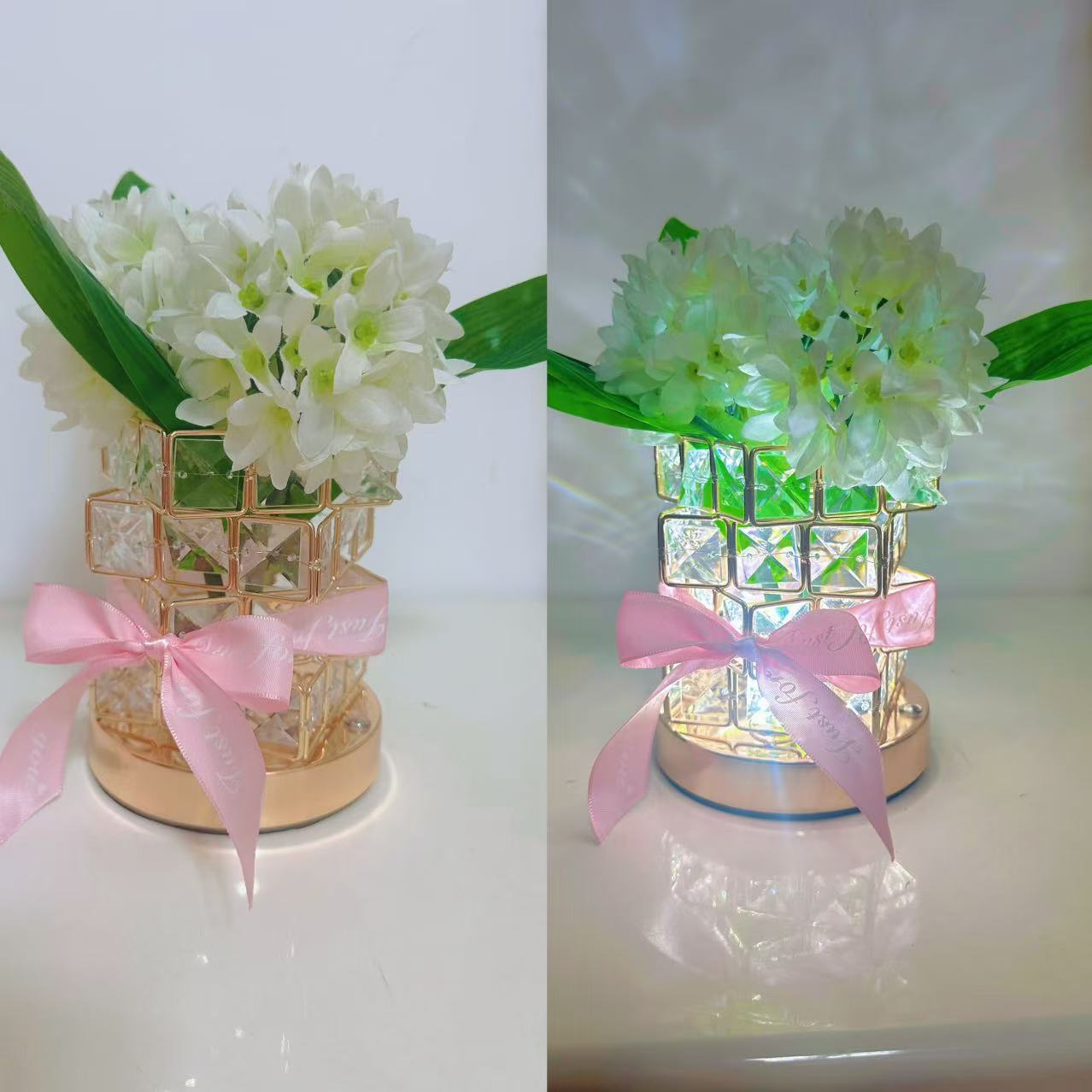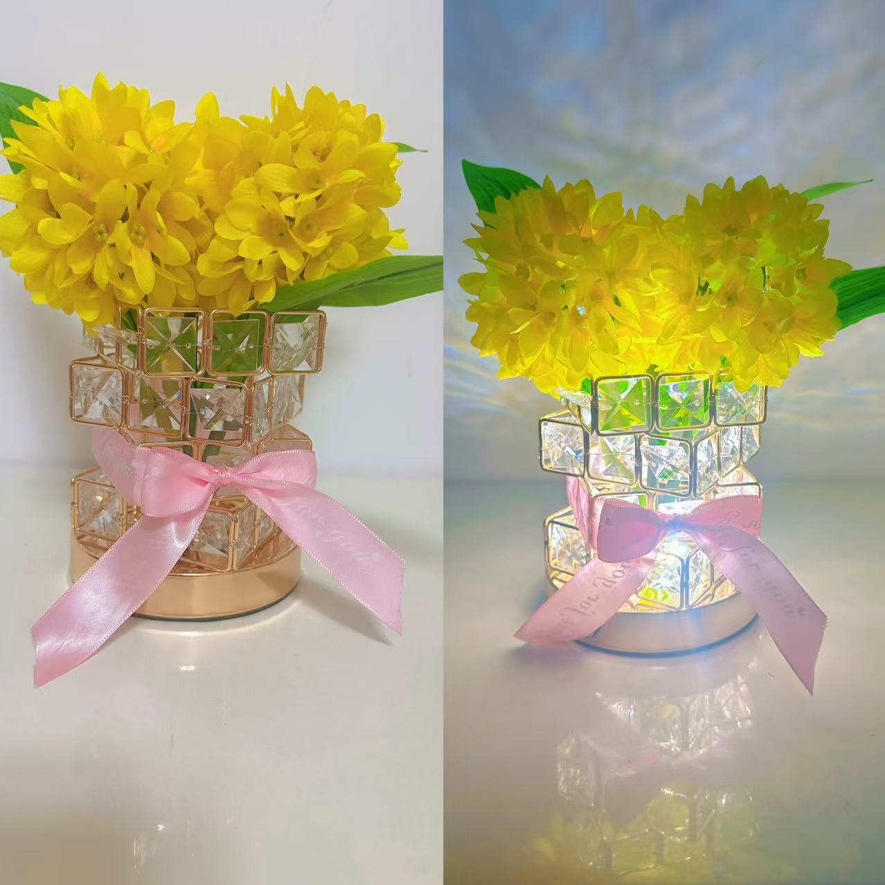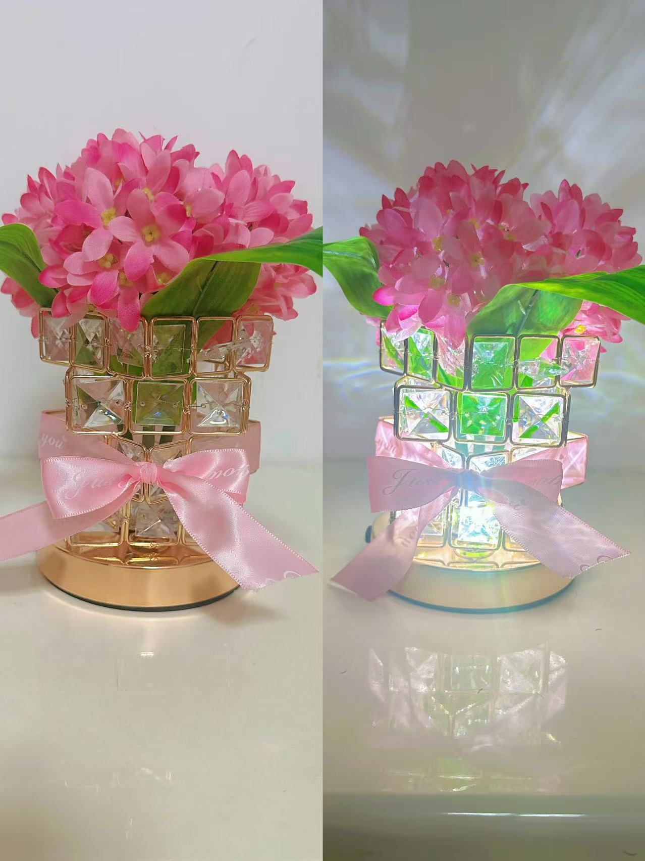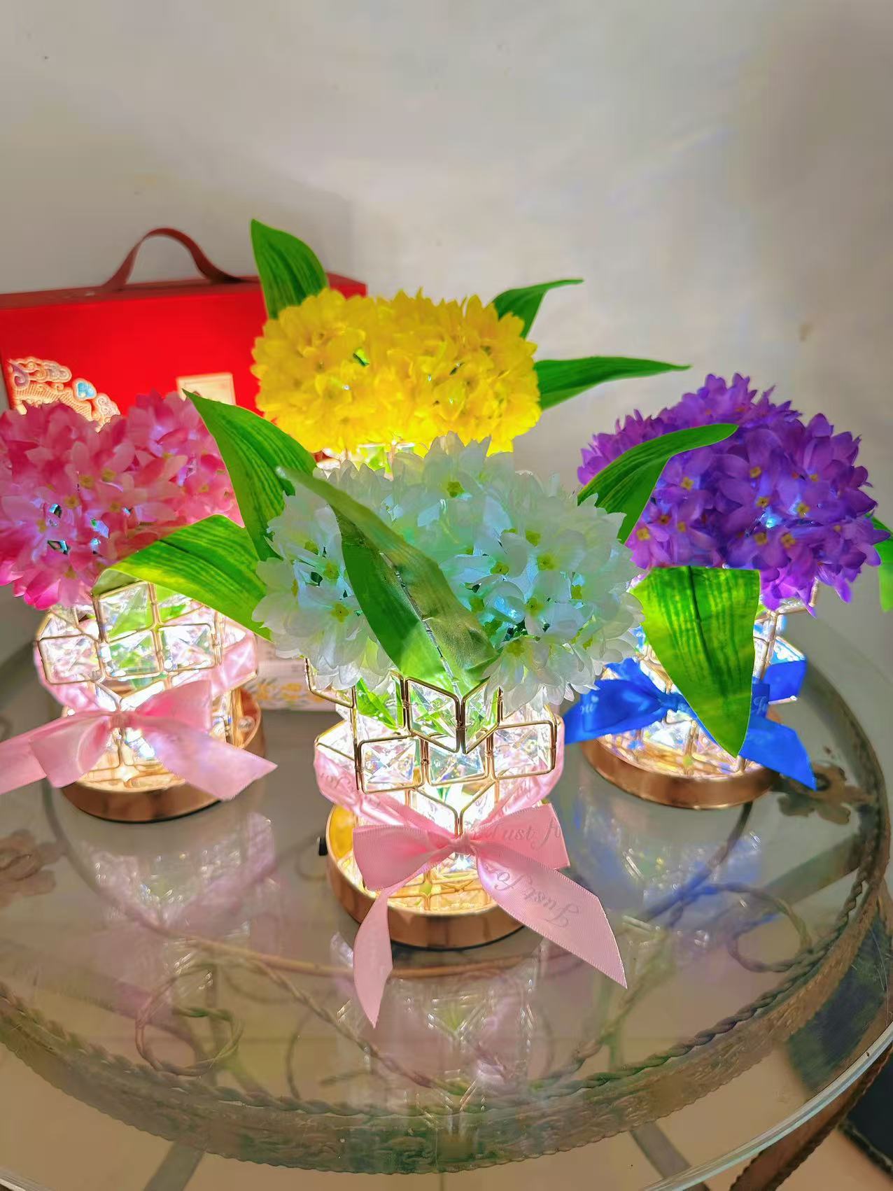 루빅스 큐브 크리스탈 수국 램프 꽃 야간 조명 웨이브 침실 머리맡 조명 분위기 야간 조명 생일 선물