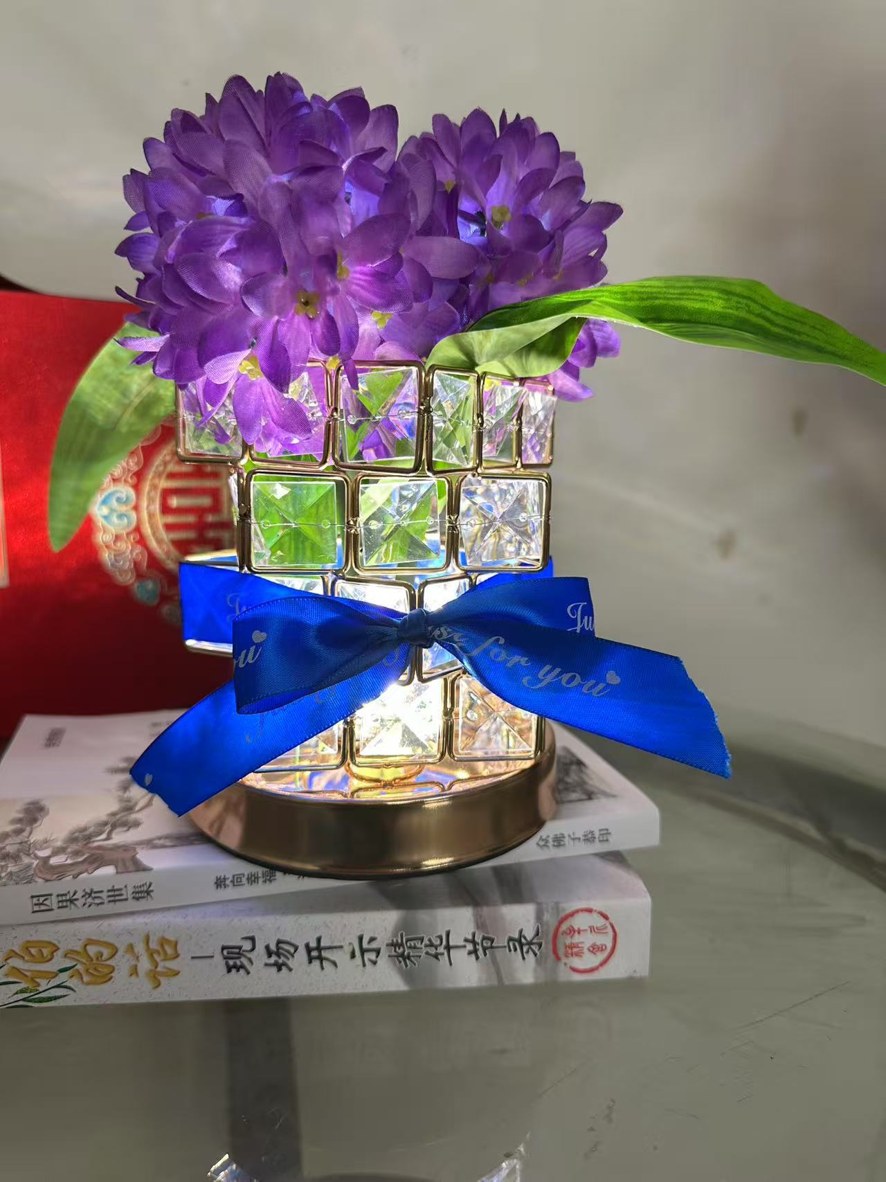 • 보라색 크리스탈 루빅스 큐브 수국 램프