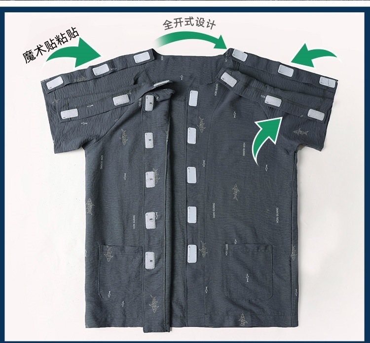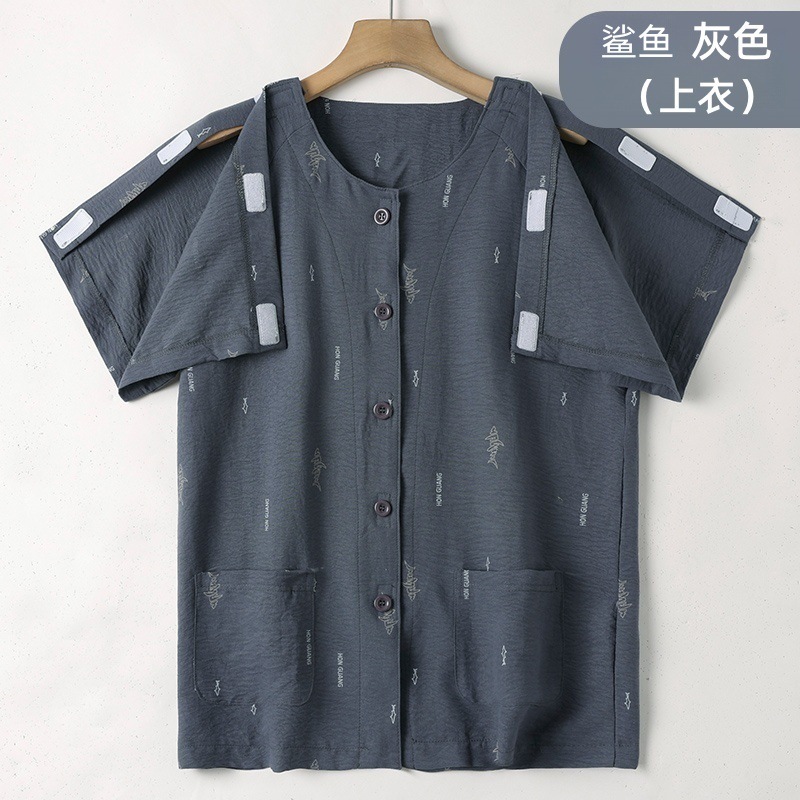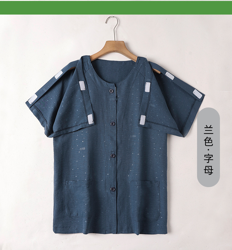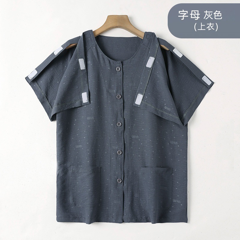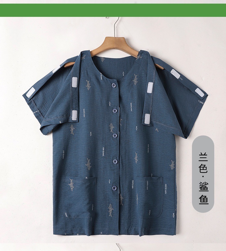 여름 반팔 병원 가운 골절 수술 후 재활 간호 가운 얇은 잠옷 교차 국경 침대 장애 이륙하기 쉬운 옷스토어 가기