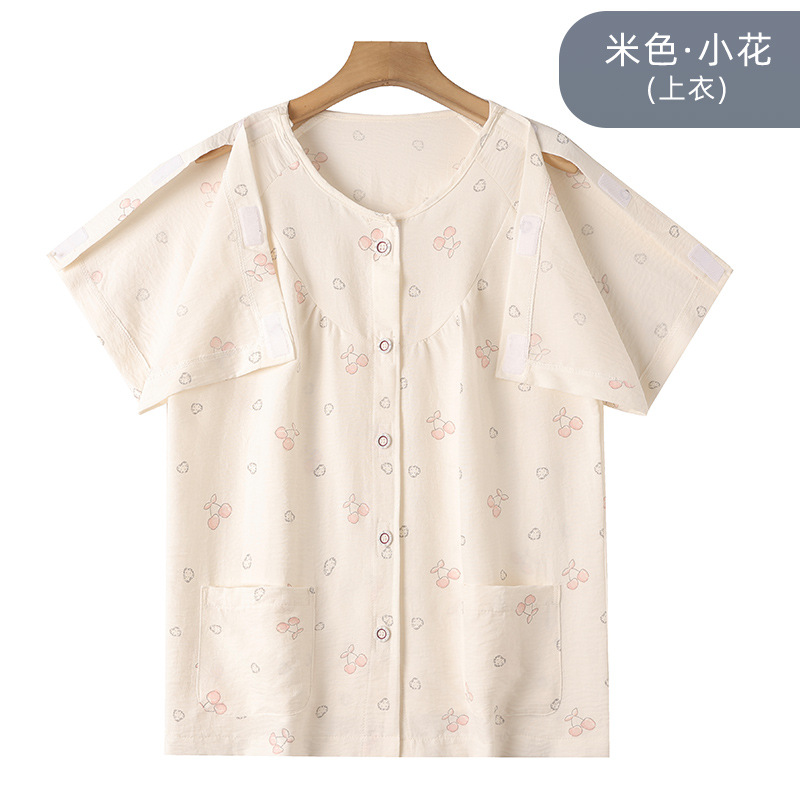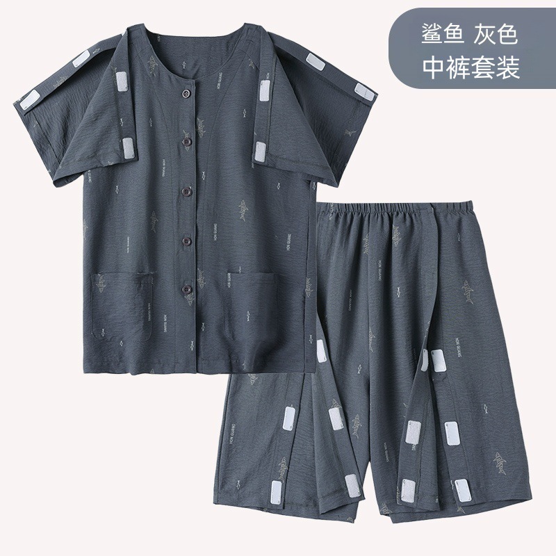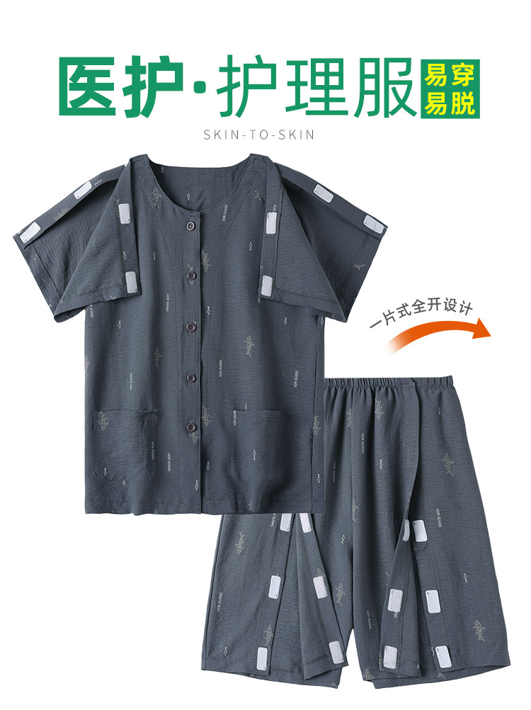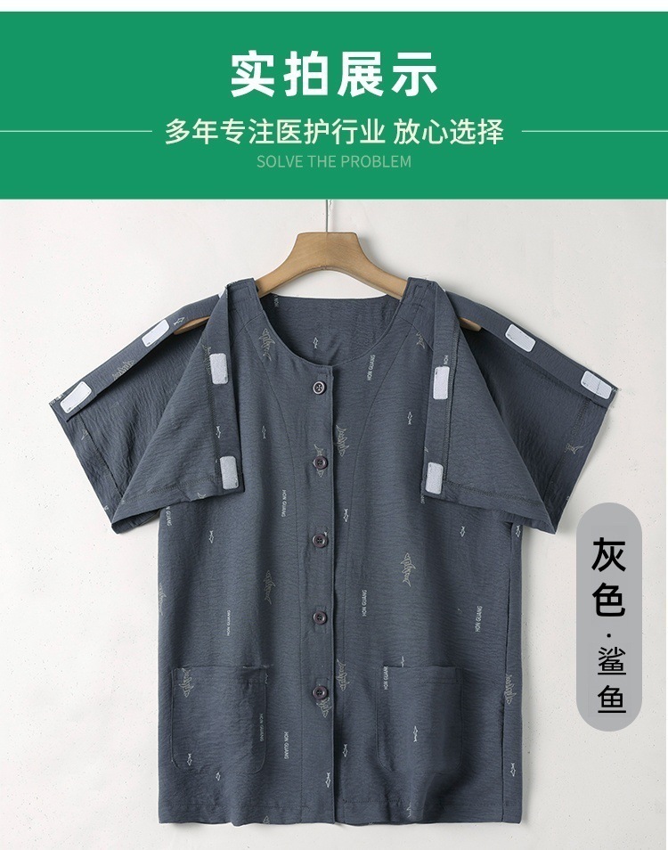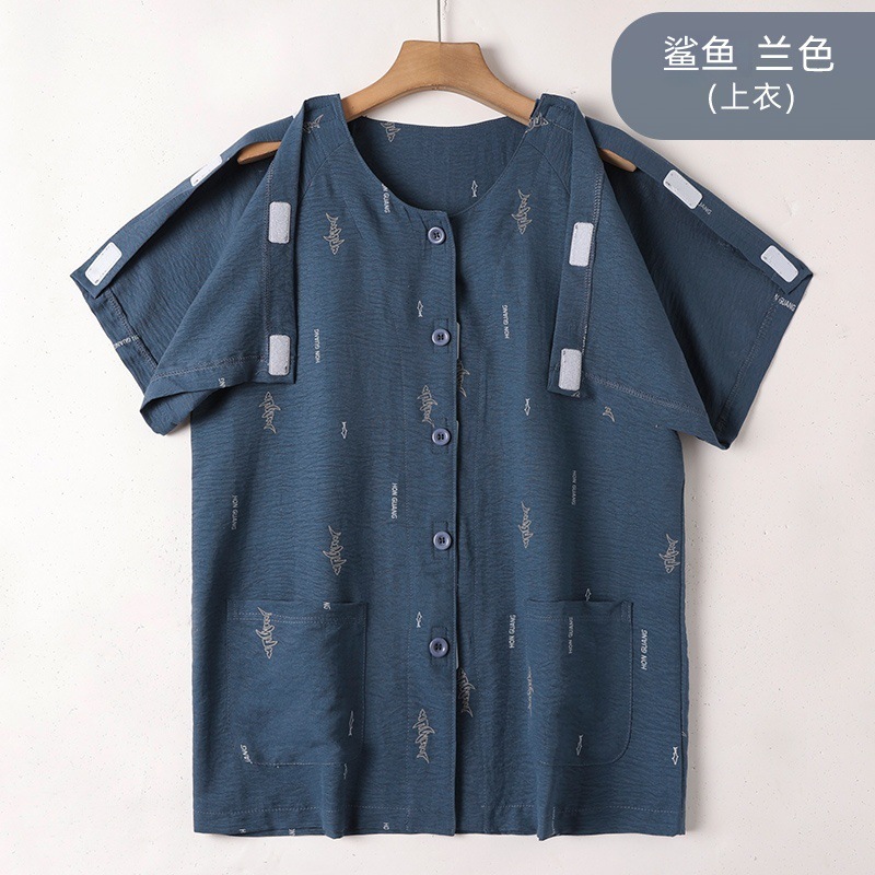 여름 반팔 병원 가운 골절 수술 후 재활 간호 가운 얇은 잠옷 교차 국경 침대 장애 이륙하기 쉬운 옷스토어 가기