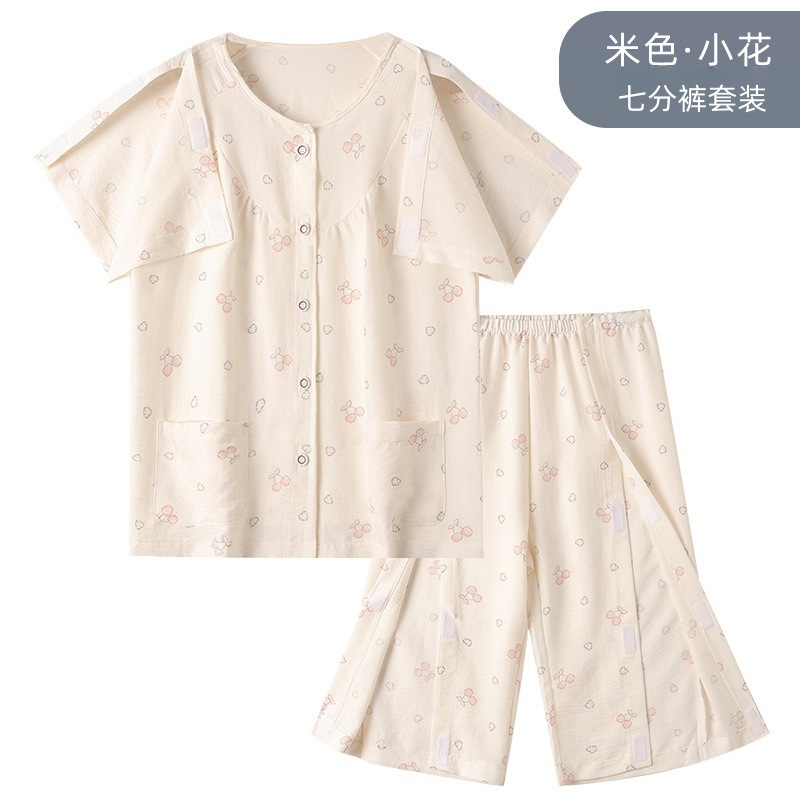 여름 반팔 병원 가운 골절 수술 후 재활 간호 가운 얇은 잠옷 교차 국경 침대 장애 이륙하기 쉬운 옷