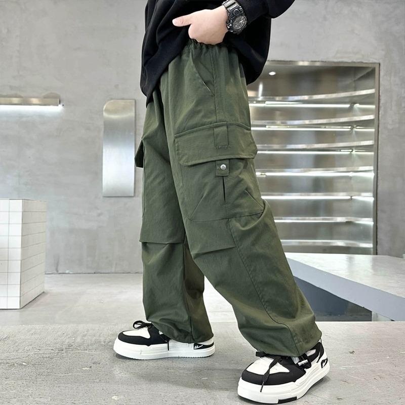남아용 작업복 바지, 봄, 가을 신작 스포츠, 큰 어린이를 위한 스트레이트 캐주얼 와이드 팬츠, 트렌디하고 멋스러운 스트리트웨어